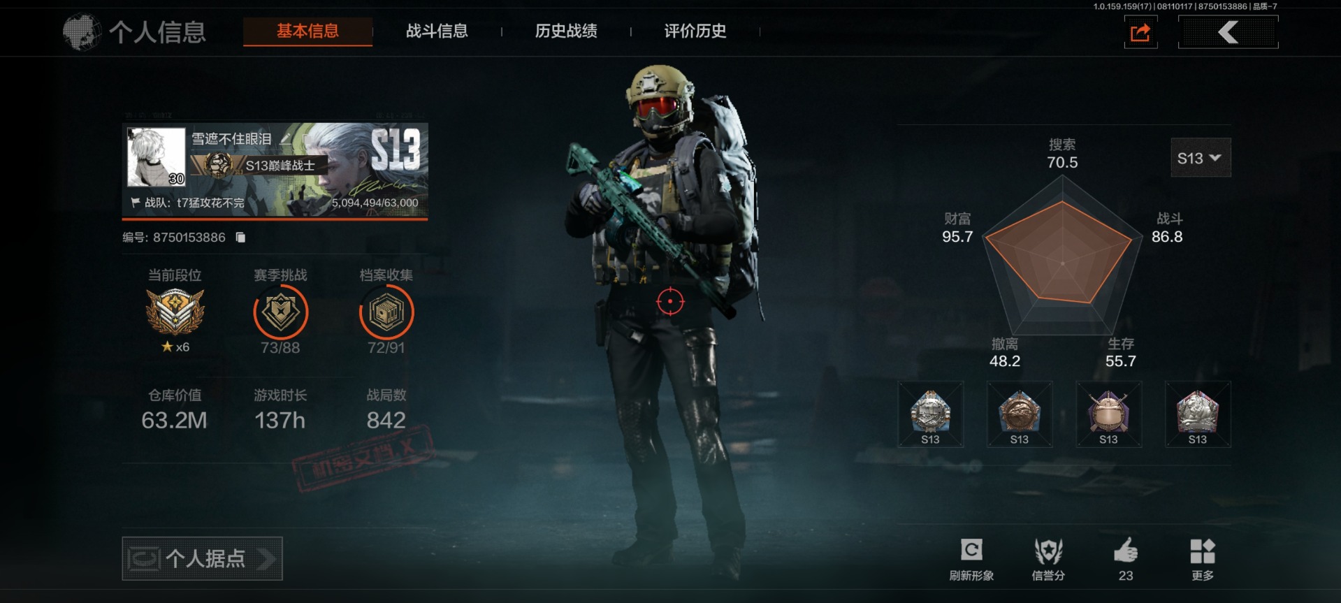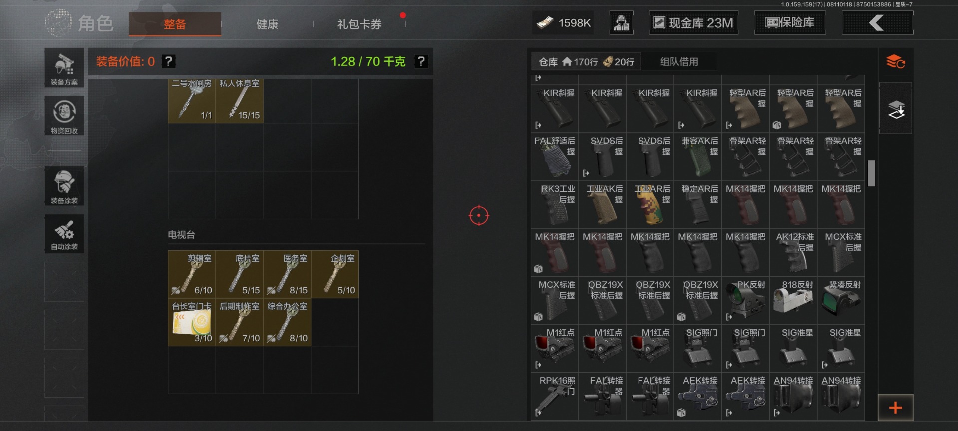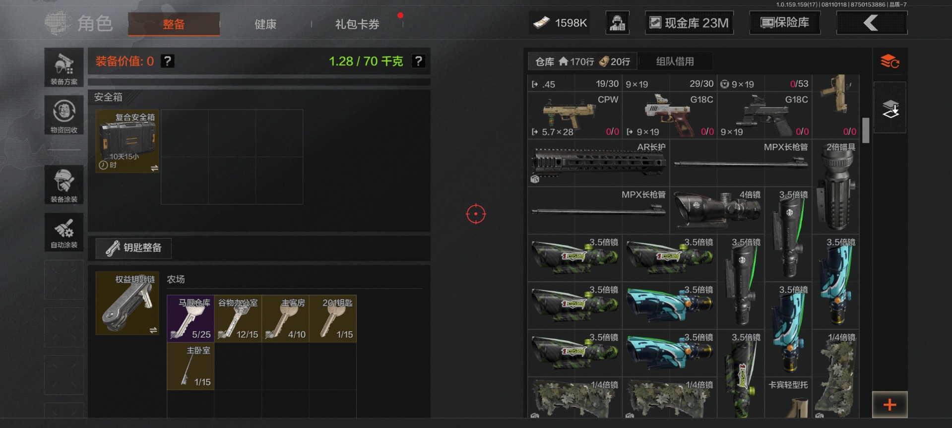 库存价值63.2 1手套 2近战武器 3金呛皮 可修改实名 柯恩币数量:1598 近战武器:赢家匕首工兵铲 手套:急袭手套 金色呛皮:旗帜·aek钢铁真理·q191林中人·fal 紫色呛皮:禁止访问·ump45白貂·f57骑士之剑·ace31骑士之剑·sj16骑士之剑·14炎