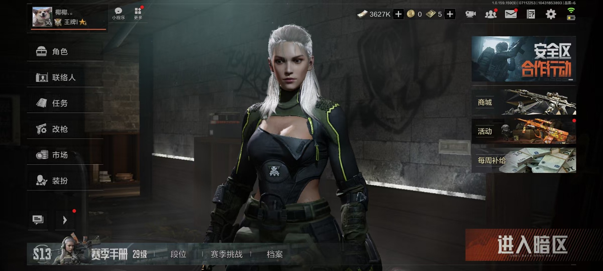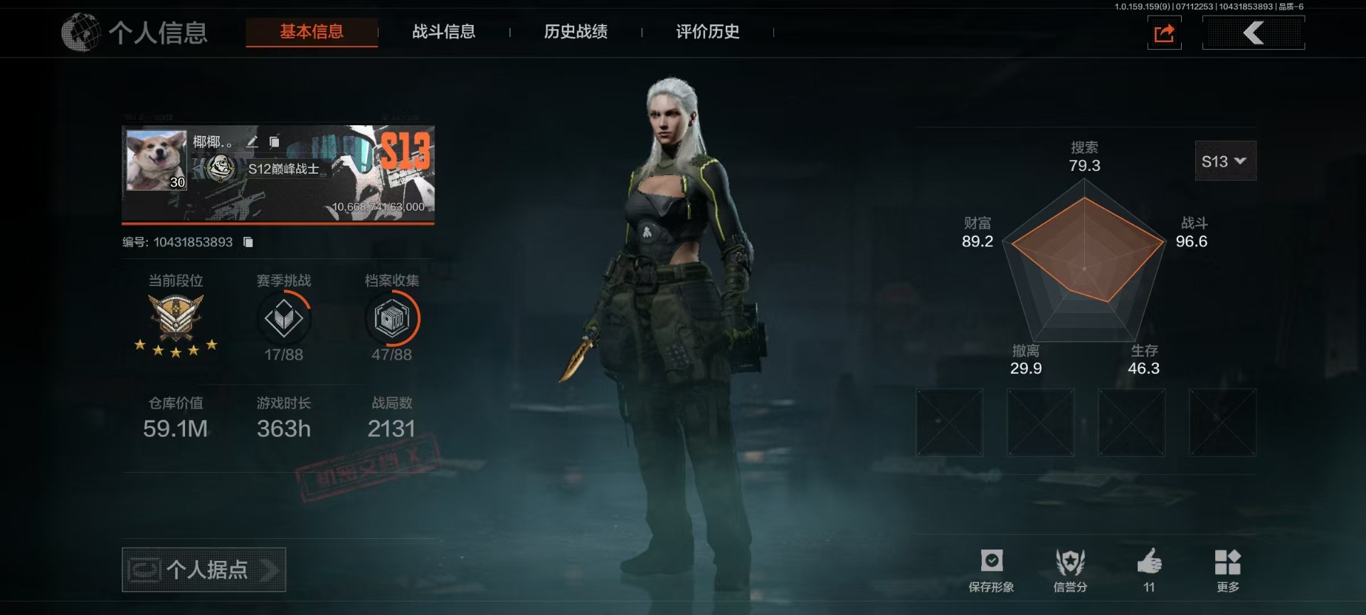 可二次 可修改实名 柯恩币数量:3627 仓库价值:59.1 角色装扮(金):绕指玉鸾·战术甲胄火绒·塔莉娅 近战武器:三尺万仞·战术剑工兵铲来战·开山刀冬日冰镐裁决手杖剑赢家匕首 金色呛皮:钢铁真理·q191竞技·fal骑士之剑·vss长缨风掣·vect9蓝色咆哮·h4