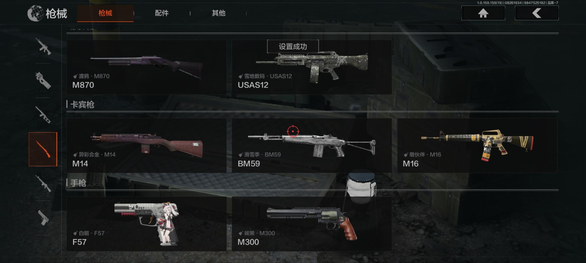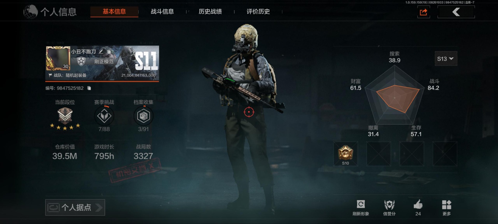库存价值39.5 2近战武器 可修改实名 柯恩币数量:907775 近战武器:工兵铲来战·开山刀 紫色呛皮:白貂·f57和平之手·fal玄戈梨花·m缟兵玄墨·m11007式林地迷彩·q191来战·akm敬伙伴·m16来战·ak74n