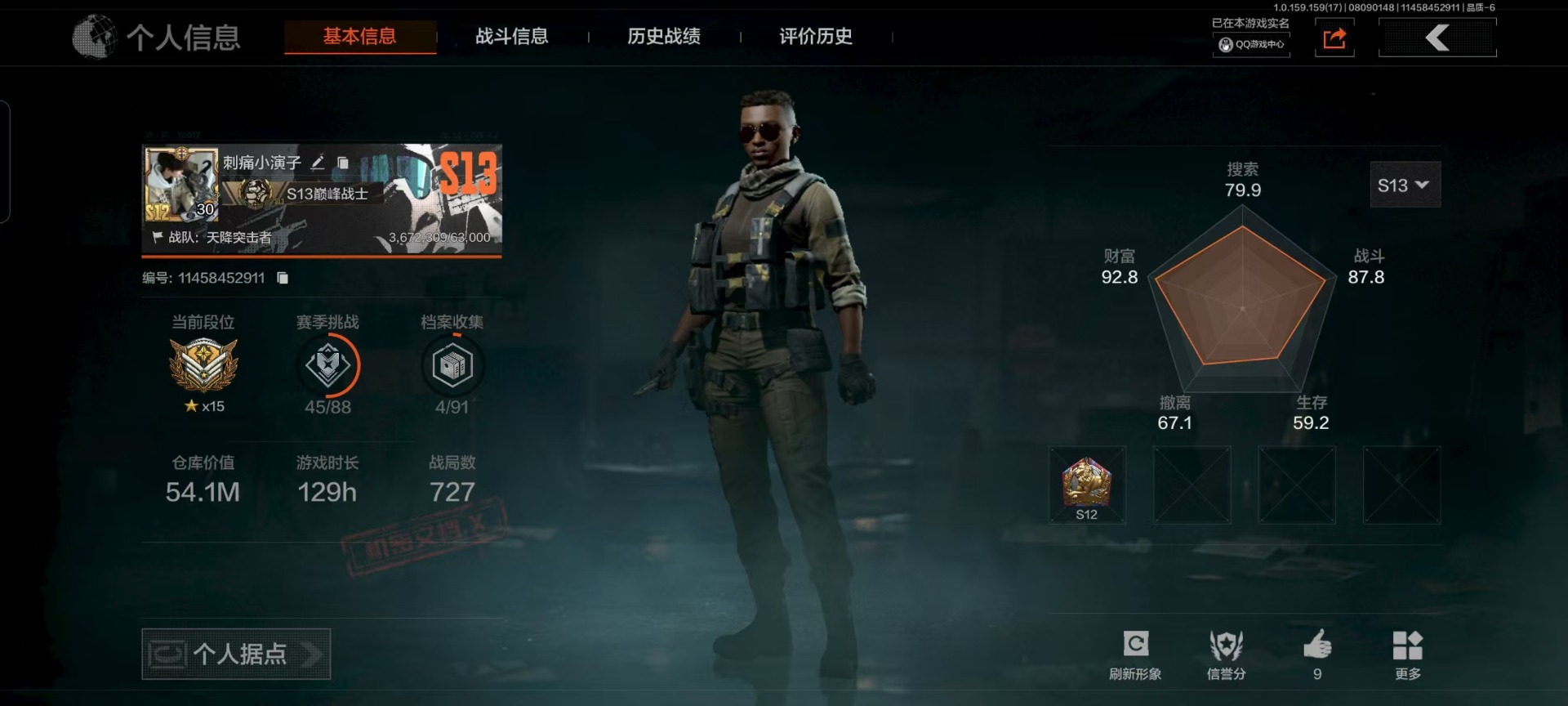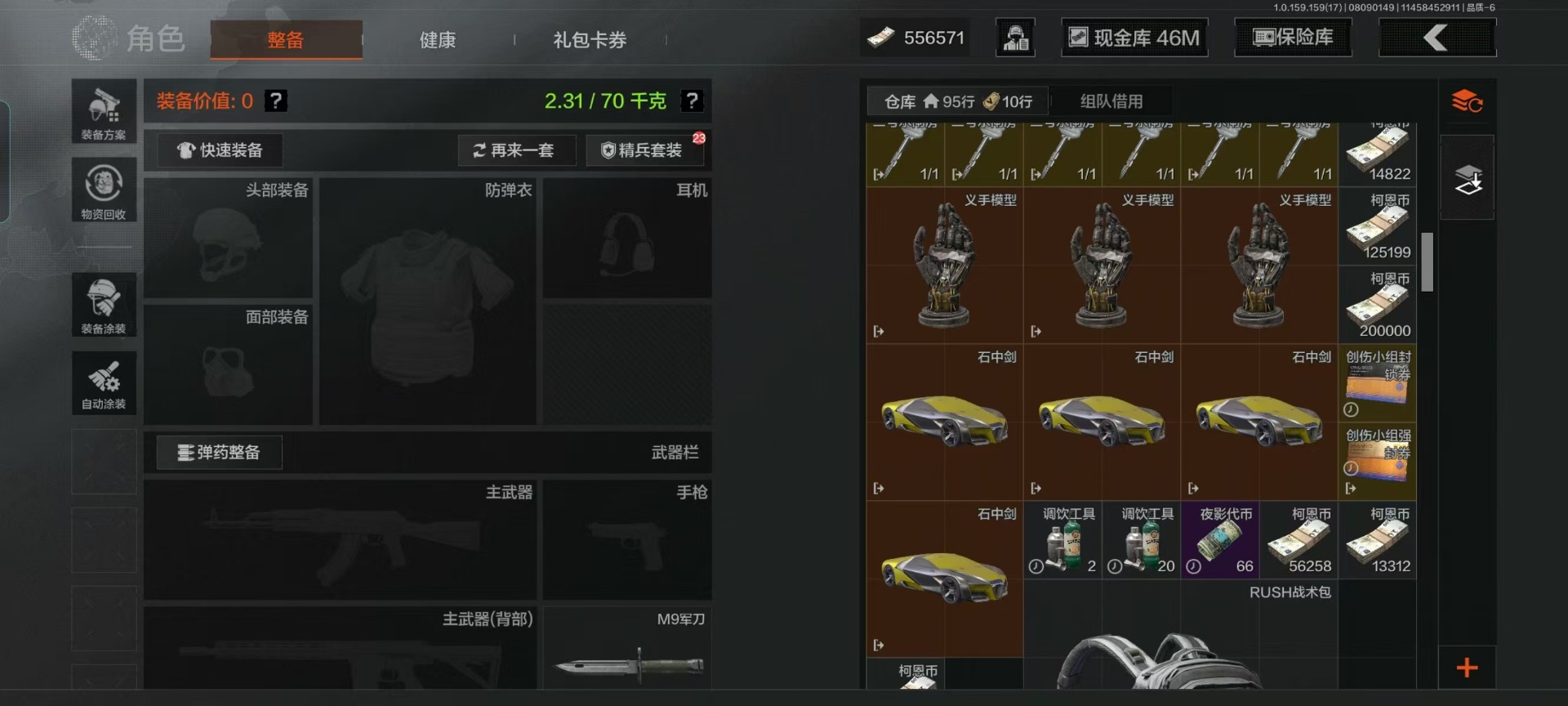 库存价值54.1 可修改实名 柯恩币数量:556571 紫色呛皮:骑士之剑·14骑士之剑·aks74u火力倾泻·akm武侍·sj16黑色国际·m4a1