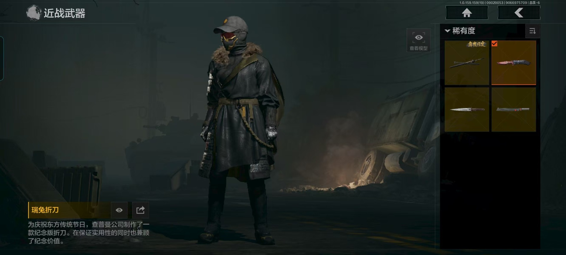 [11471854]库存价值8.9 1手套 4近战武器 1金套装 2金呛皮 可修改实名 优质装备:瑞兔折刀三尺万仞·战术剑都护铁衣·战术甲胄突击匕首玉鸾挂枝·手套长缨风掣·rpk16长缨风掣·vect9 柯恩币数量:306600 近战武器:来战·开山刀 紫色呛皮:白色丧钟·莫辛炎夏浪花·h416玄戈梨花·m110缟兵玄墨·vss缟兵玄墨·t03缟兵玄墨·akm07式林地迷彩·q191快乐游戏·ak102竞技·aug最后防线·aek阴影·an94竞技·m4a1来战·ak74n