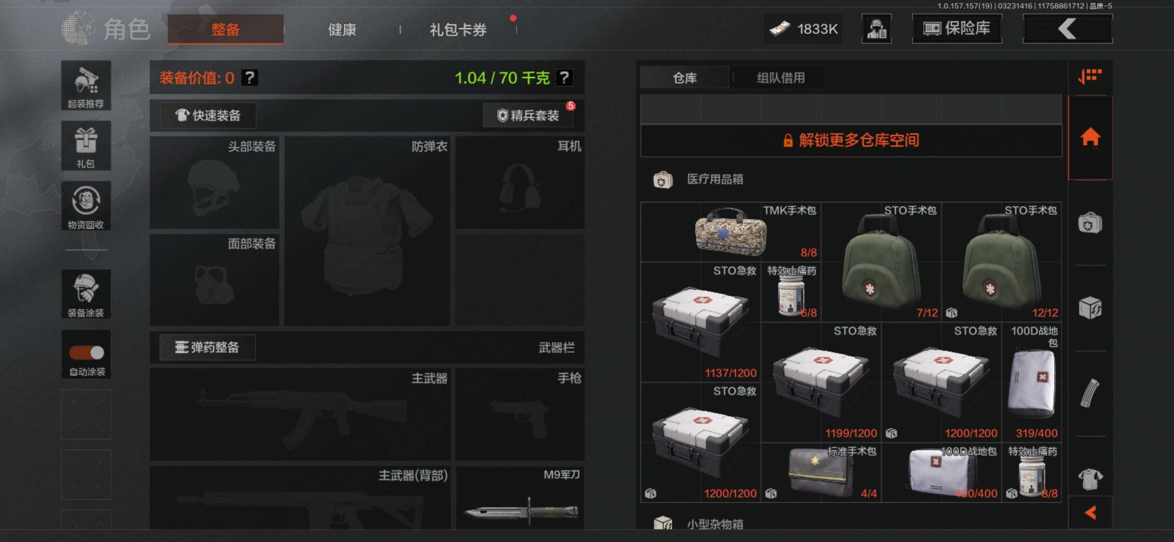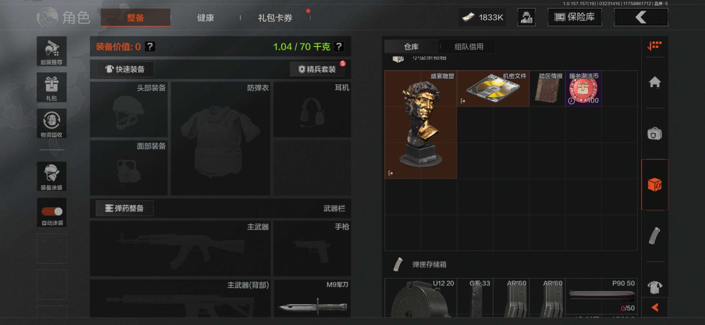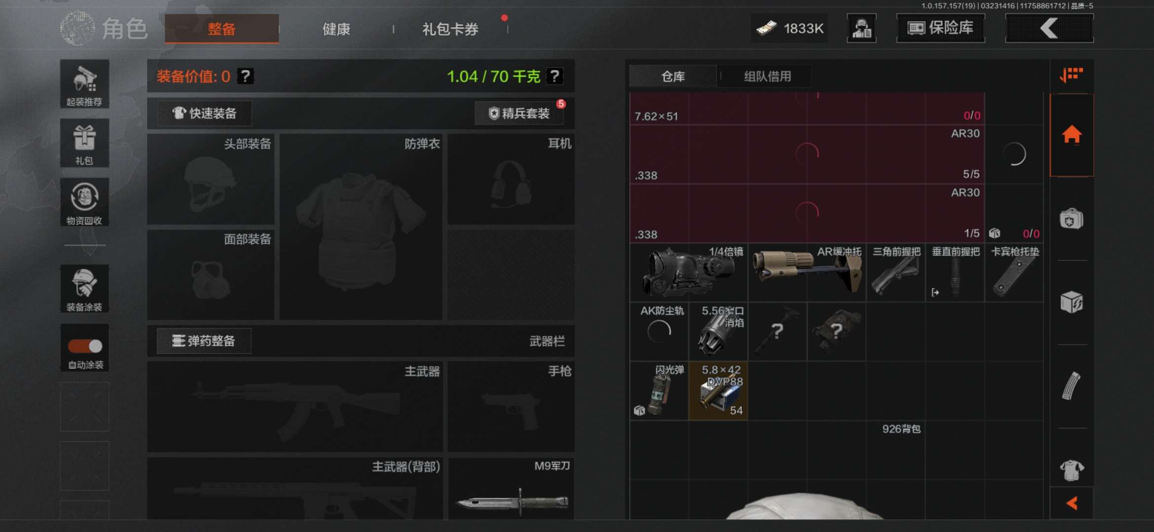 【仓库价值11m 柯恩币1833k 机密文件 1大金 3呛皮 1刀 工兵铲】安卓q-等级30-科恩币1833k 【呛皮】 森林迷彩·t951 黑金国际·m110 渡鸦·m870 【刀皮】 工兵铲