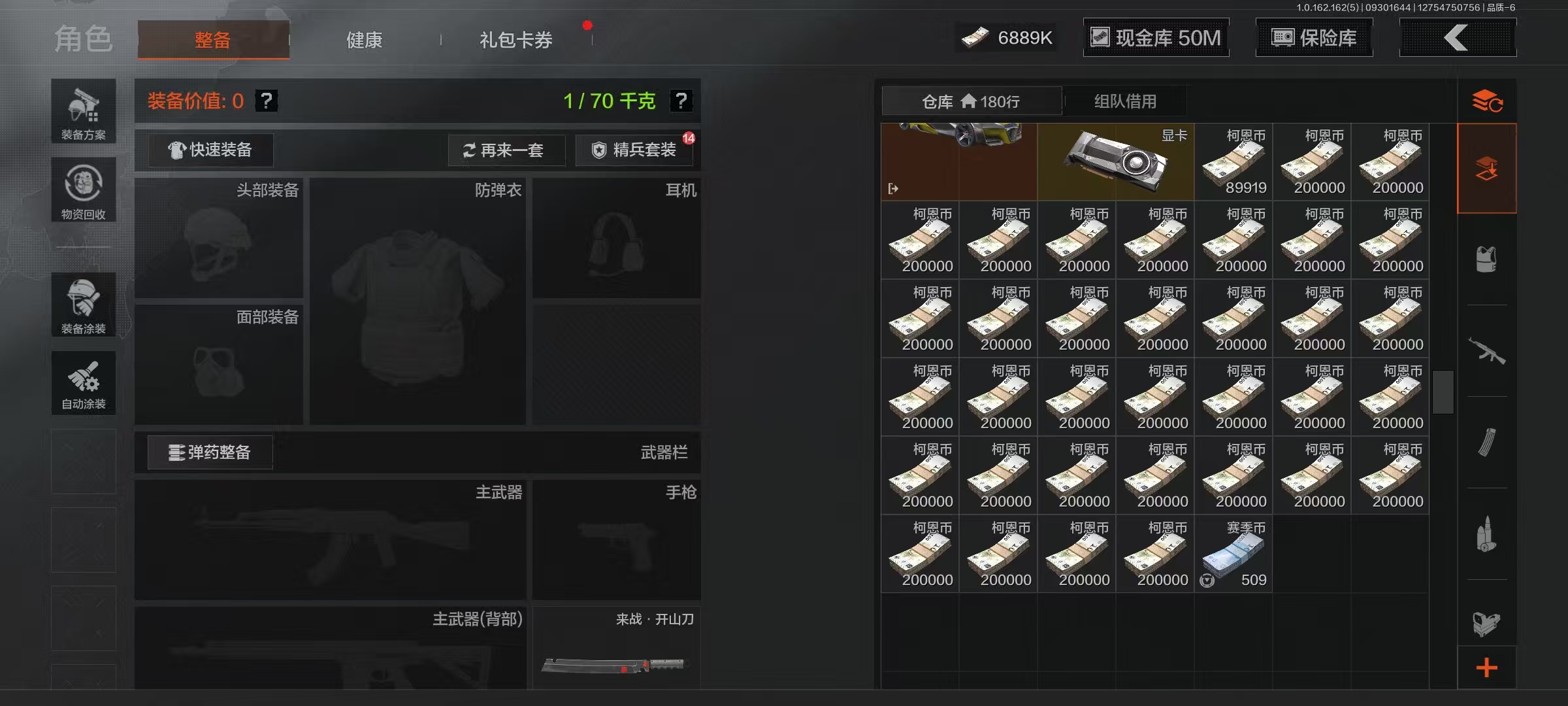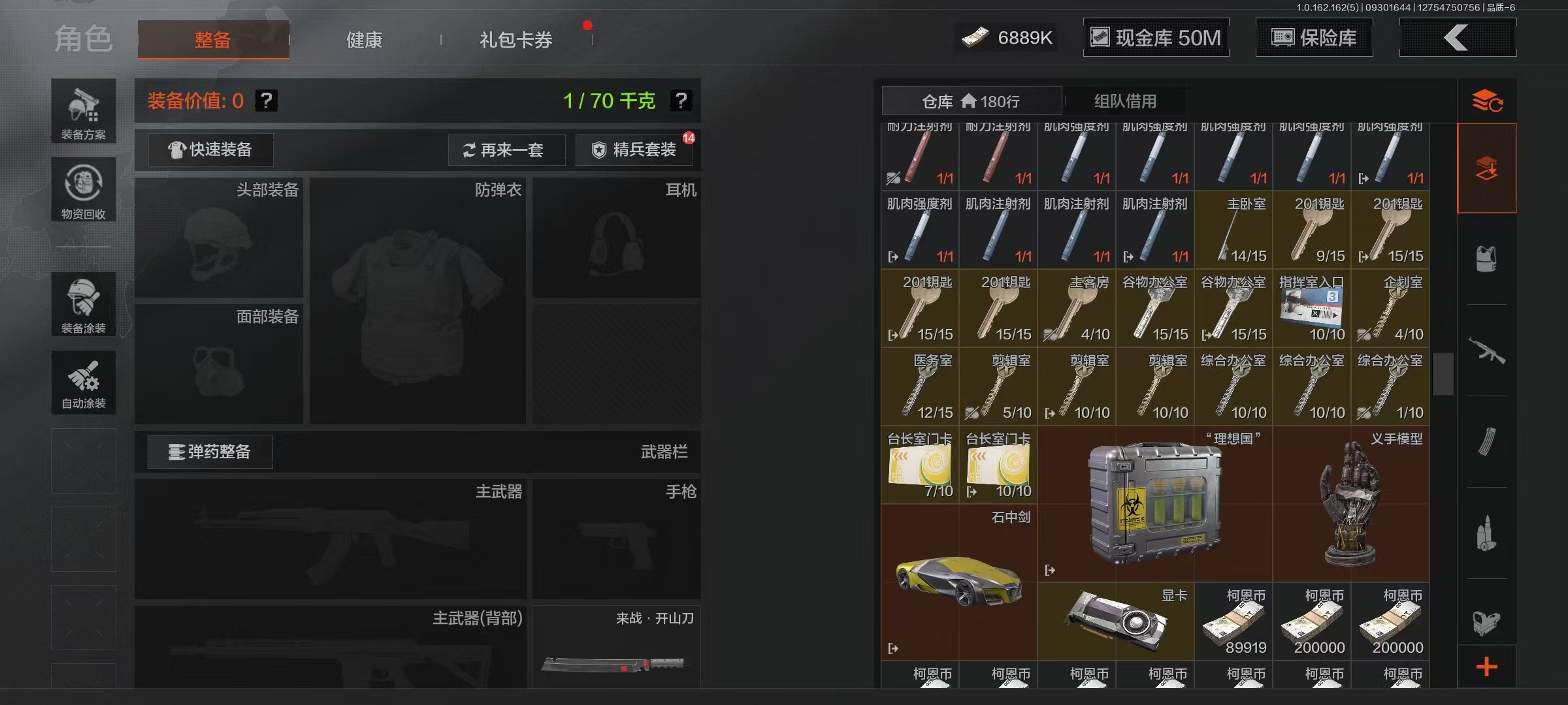 [12191264]暗区 可二次 现金号 仓库价值67.2m 2金呛皮 竞技·fal 棱光裂变·qbu191 5600万现金 理想国 骤羽尖啸·m4a1 竞技·aug 骤羽尖啸·m 都市夜影套装