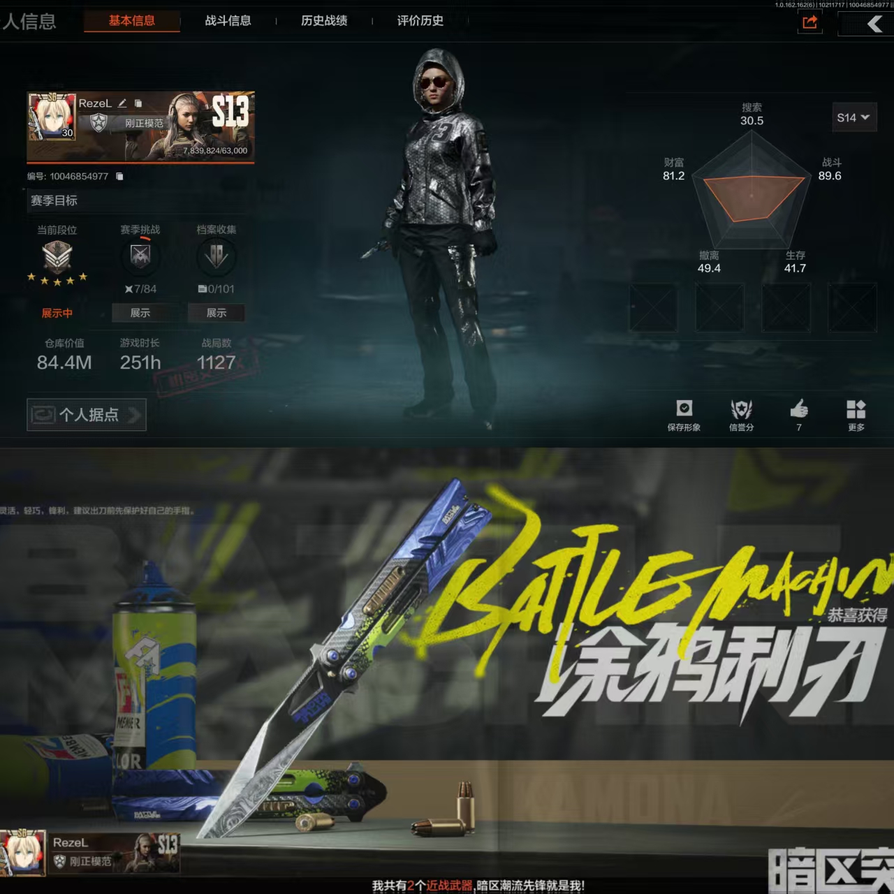 [12846977]暗区 可二次 仓库价值84.4m 1刀 3金呛 3200万现金 涂鸦利刃 钢铁真理·q191 骑士之剑·vss 旗帜·aek 火力倾泻·aug 涂鸦·m 6格保险体验卡 机密文件陈列 理想国陈列 洛天依手办陈列