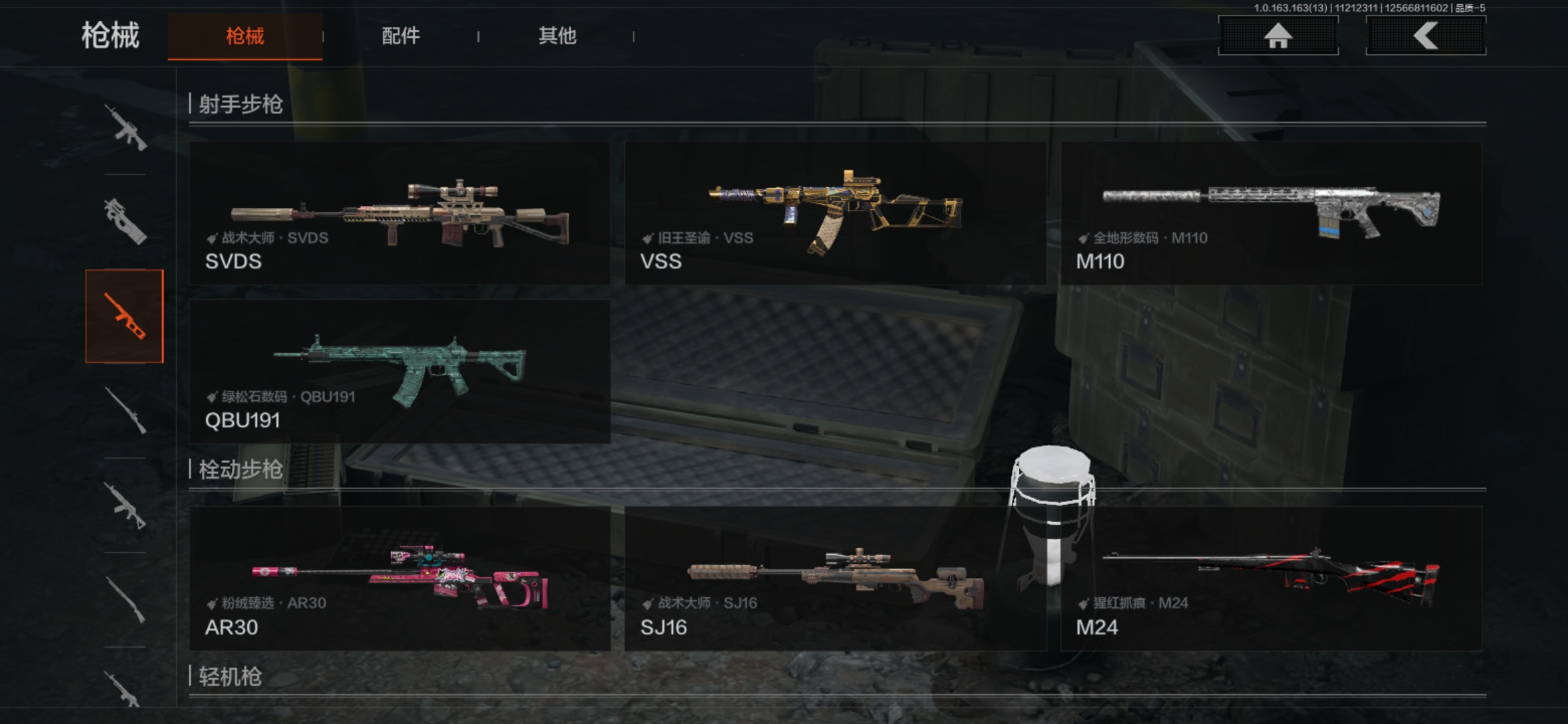 安卓q-等级30-仓库价值12.0m-科恩币206878 【呛皮】 典礼武备·mcx 深粉玫瑰·mp5 深粉玫瑰·mp5 禁止访问·ump45 禁止访问·ump45 战术大师·suomi 战术大师·svds 旧日王圣谕·vss 粉绒臻选·ar30 猩红抓痕·m24 战术大师·sj16 秘域鎏金·rpk16 猩红抓痕·m249 绿海猎手·mini14 粉绒臻选·an94 战术大