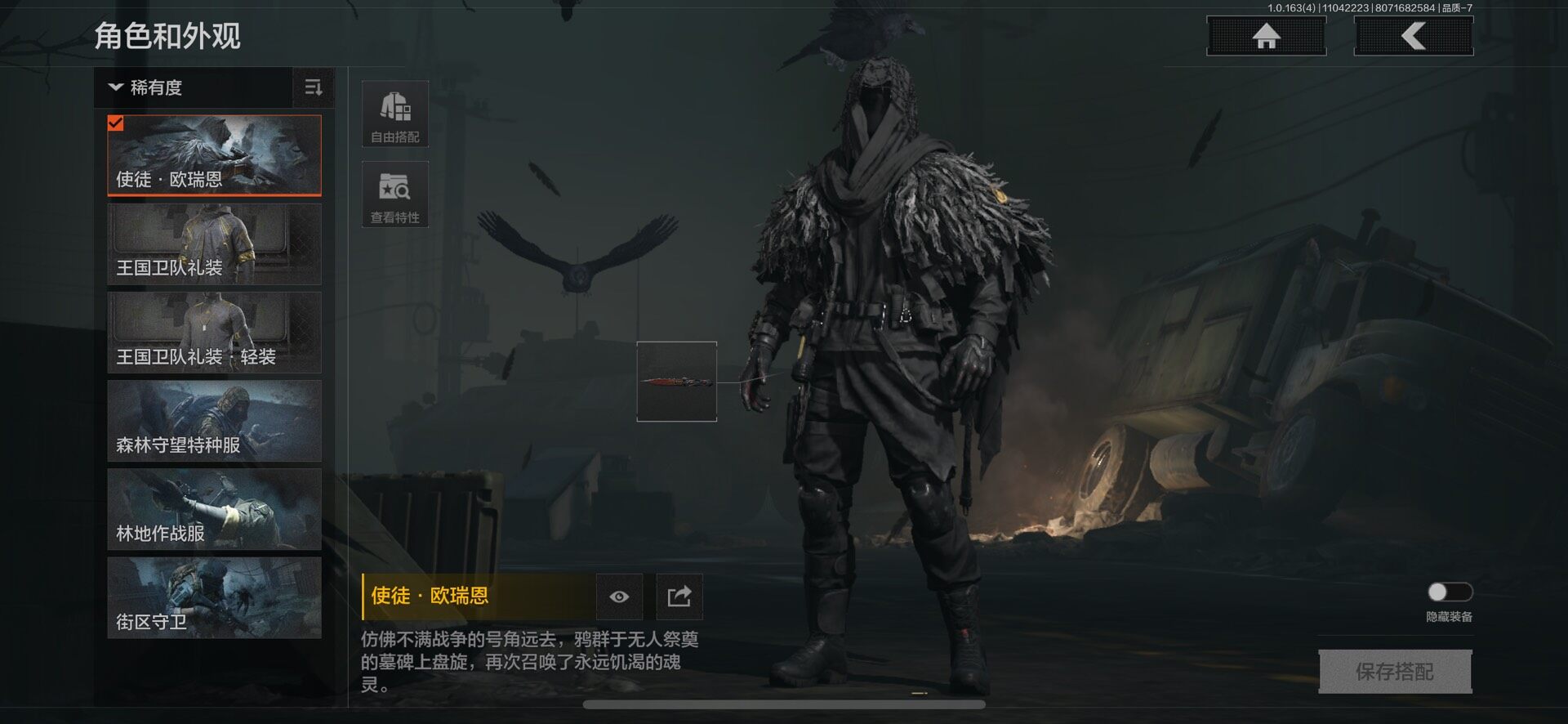 [13342018]21m/使徒·欧瑞恩/森林守望特种服/街区守卫/空腔战术/苍穹利爪/收割者/s-07折刀/热能武器·补牢/突击匕首