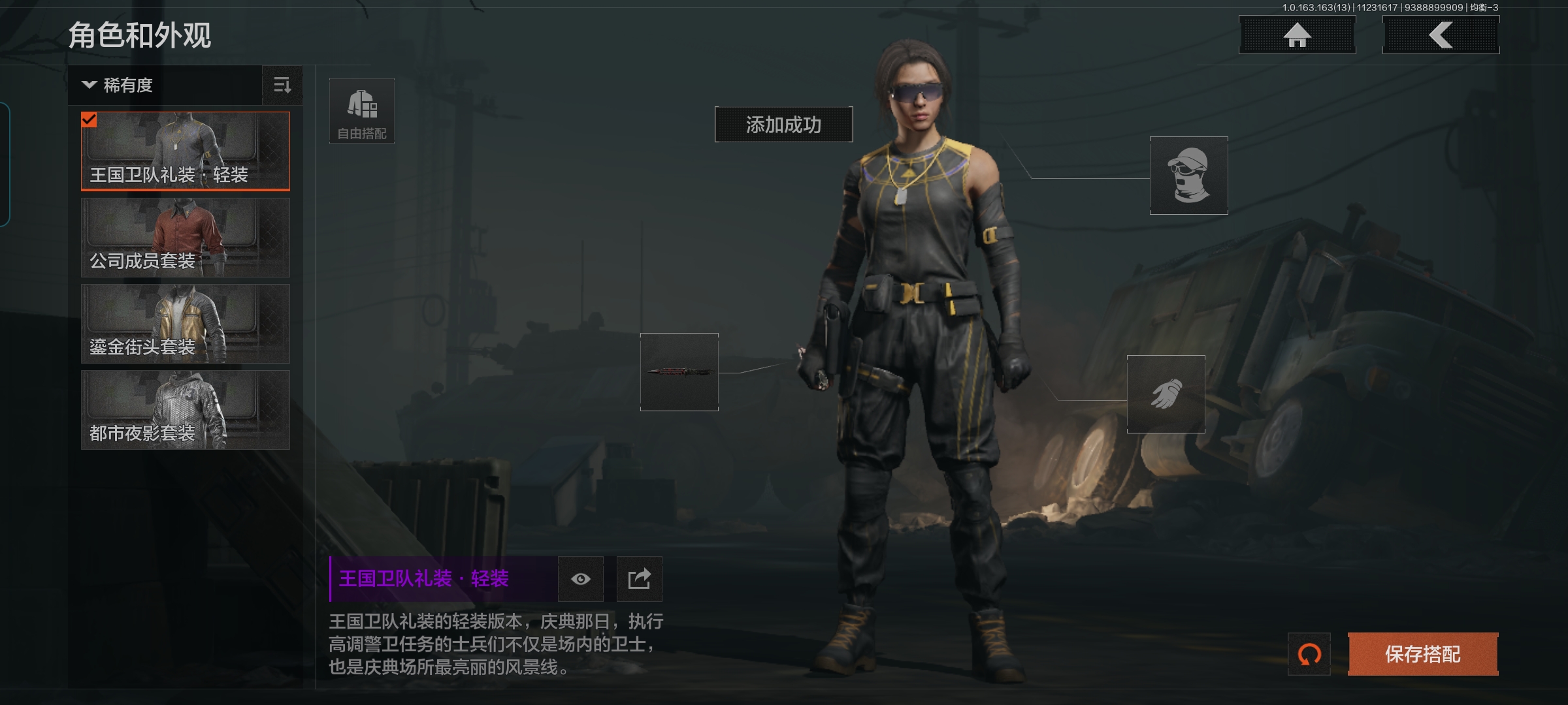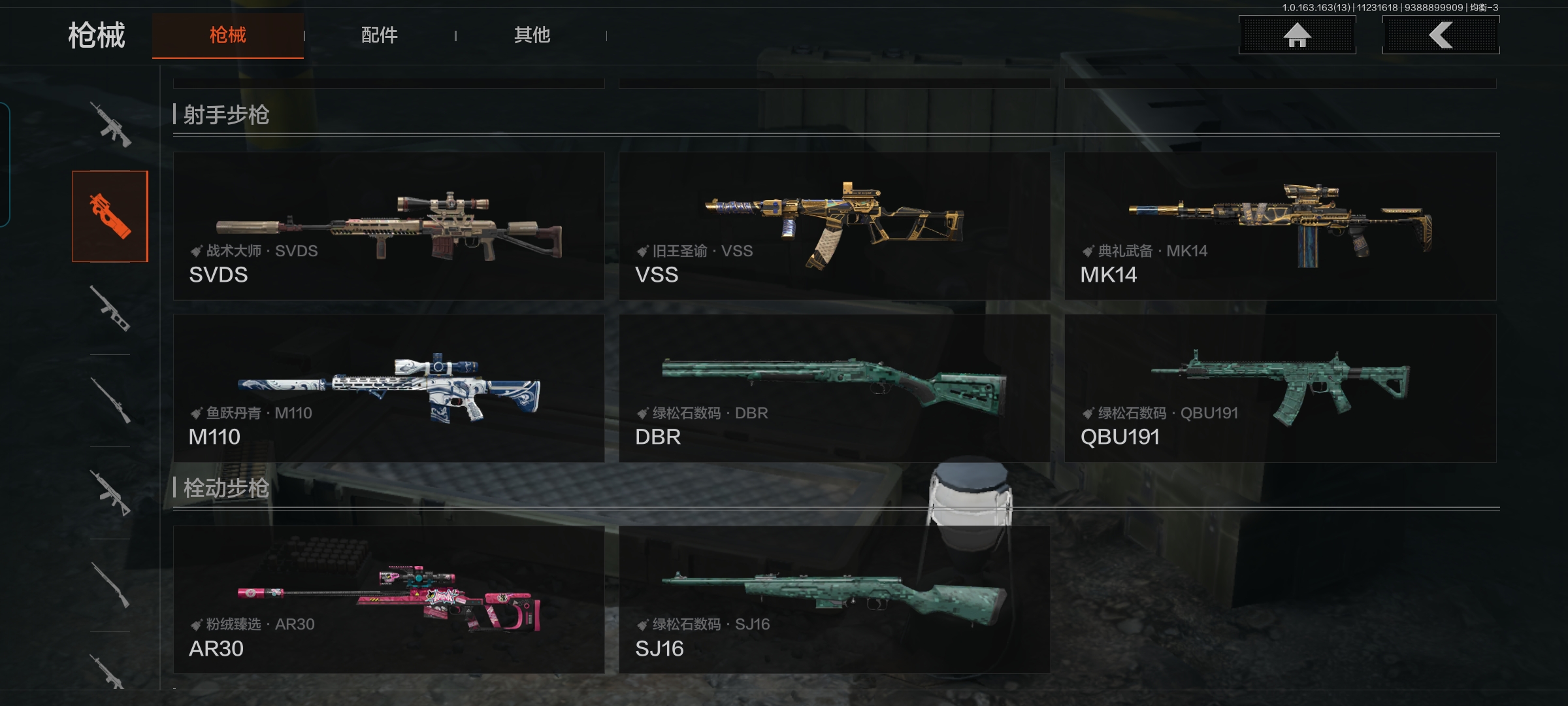 安卓q-等级30-仓库价值5.6m-科恩币895476 【呛皮】 告丧夜曲·ar57 旗帜·aek 旧王圣谕·q191 旧王圣谕·vss 【套装】 王国卫队礼装·轻装 公司成员套装 鎏金街头套装 都市夜影套装 【刀皮】 胜利军刀 野战折刀
