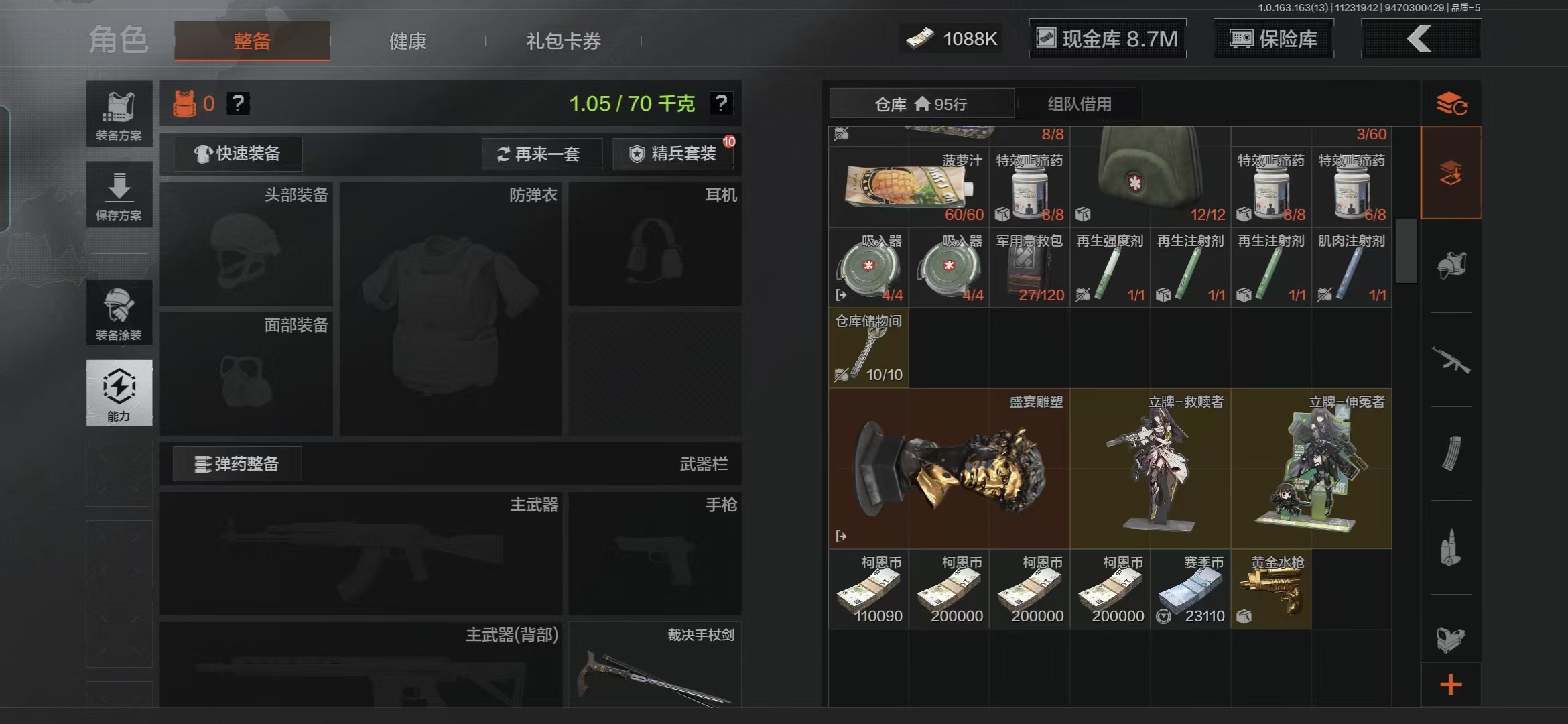 安卓q-等级30-仓库价值10.9m-科恩币1088k【现金库8.7m】 【刀皮】 裁决手杖剑 寒牙手刺