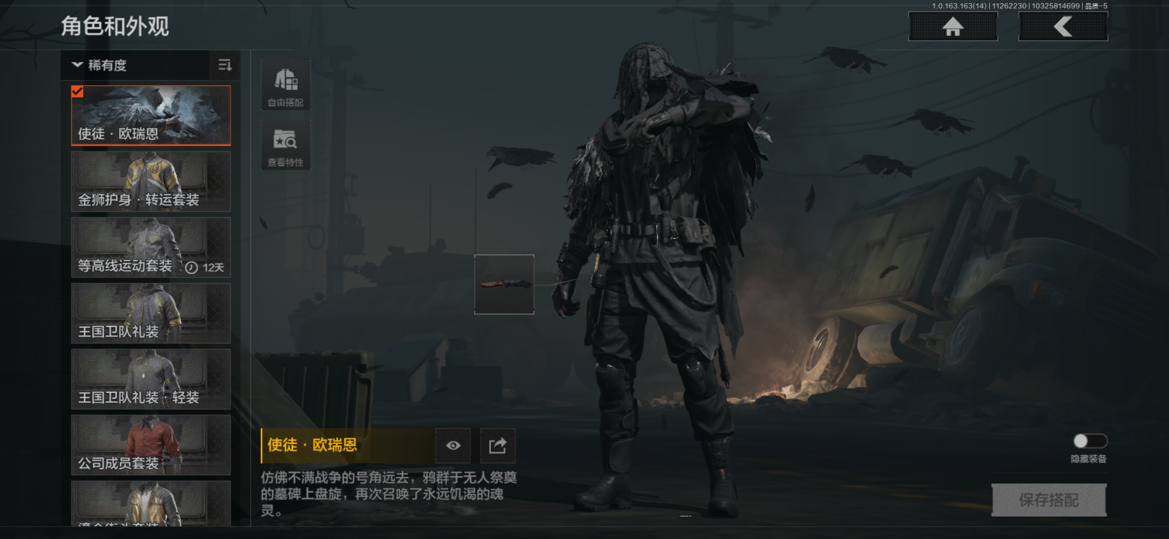 安卓q-等级30-仓库价值4.6m-科恩币0 【套装】使徒·欧瑞恩 金狮护身·转运套装 王国卫队礼装 王国卫队礼装:轻装公司成员套装 鎏金街头套装 暴恐机动队·外勤服饰 都市夜影套装 台风iv竞技运动服 【近战武器】 空腔战术 工兵铲 开山刀 赢家匕首 瑞兔折刀