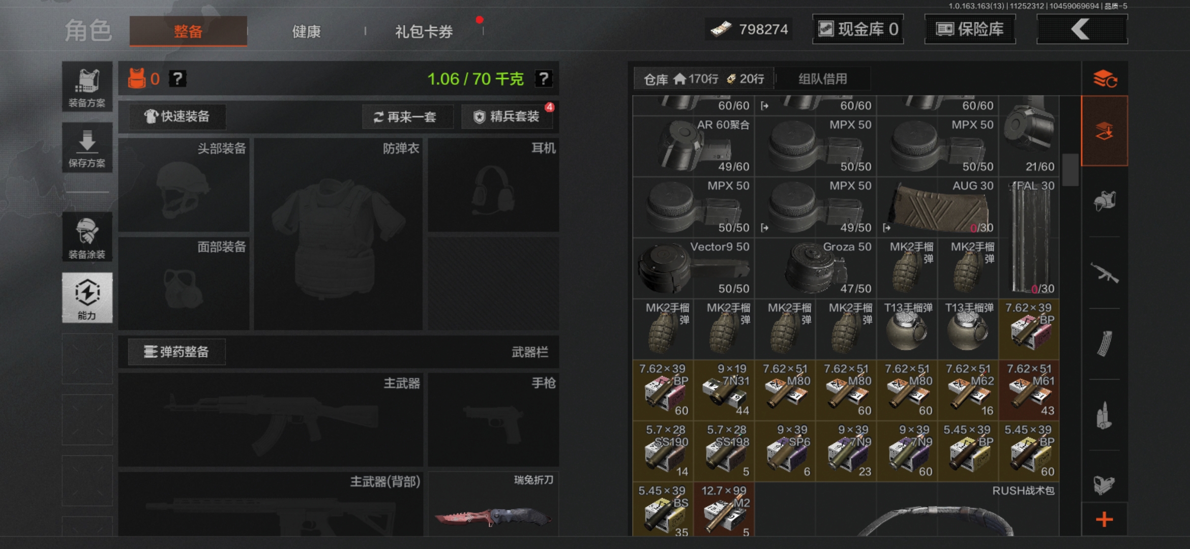安卓q-等级30-仓库价值3.3m-科恩币798274 【套装】 城市户外运动套装 等高线运动套装 台风iv竞技运动服 台风ii竞技运动服 【近战武器】 开山刀 工兵铲 螺丝刀 冬日冰镐 裁决手杖剑 突击匕首 瑞兔折刀