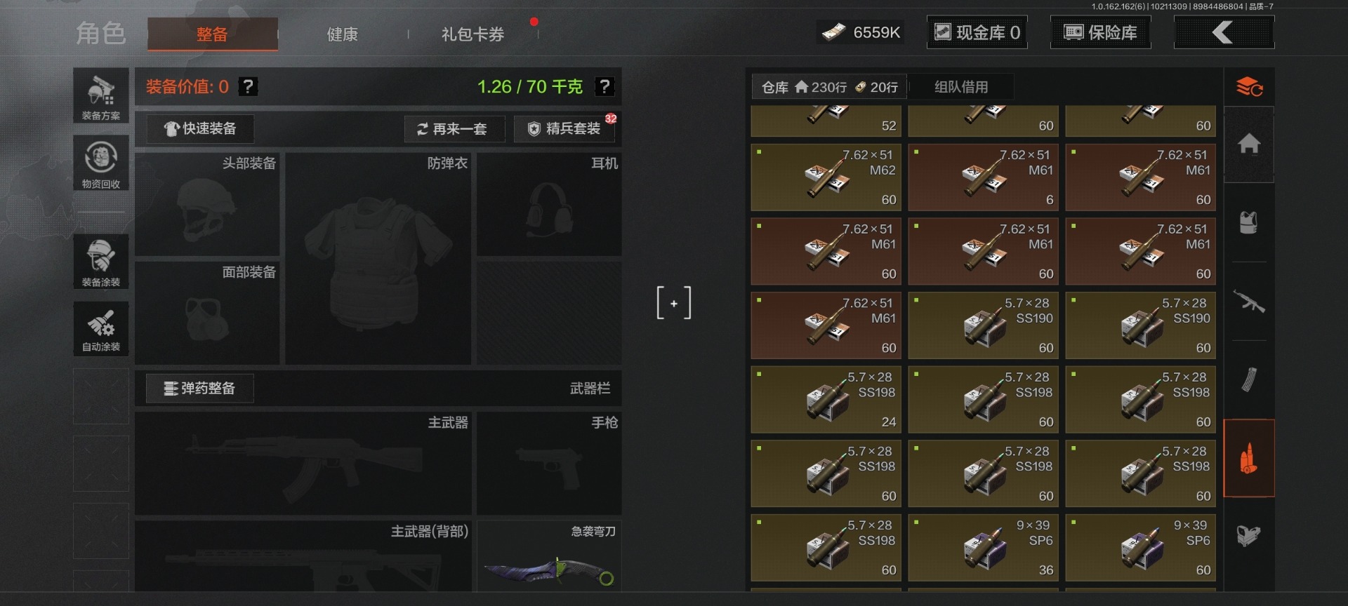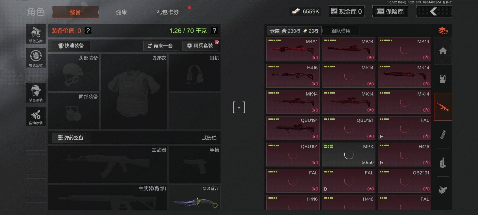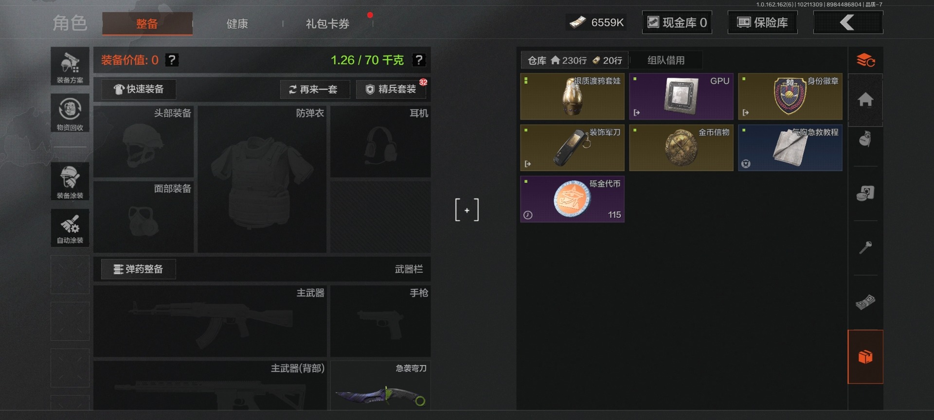 [12948737]库存价值50.3 6近战武器 6金呛皮 可修改实名 【柯恩币数量】:6559 【近战武器】:来战·开山刀热能武器·补牢工兵铲涂鸦利刃明刀·绣春急袭弯刀 【金色呛皮】:旗帜·aek战术大师·q192利齿风暴·m旧王圣谕·q191旧王圣谕·vss水
