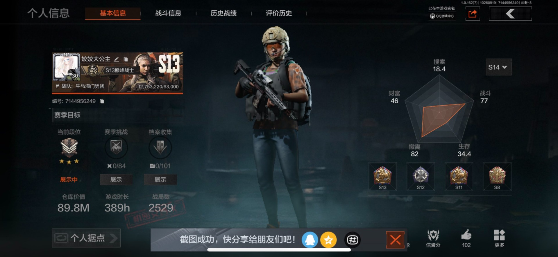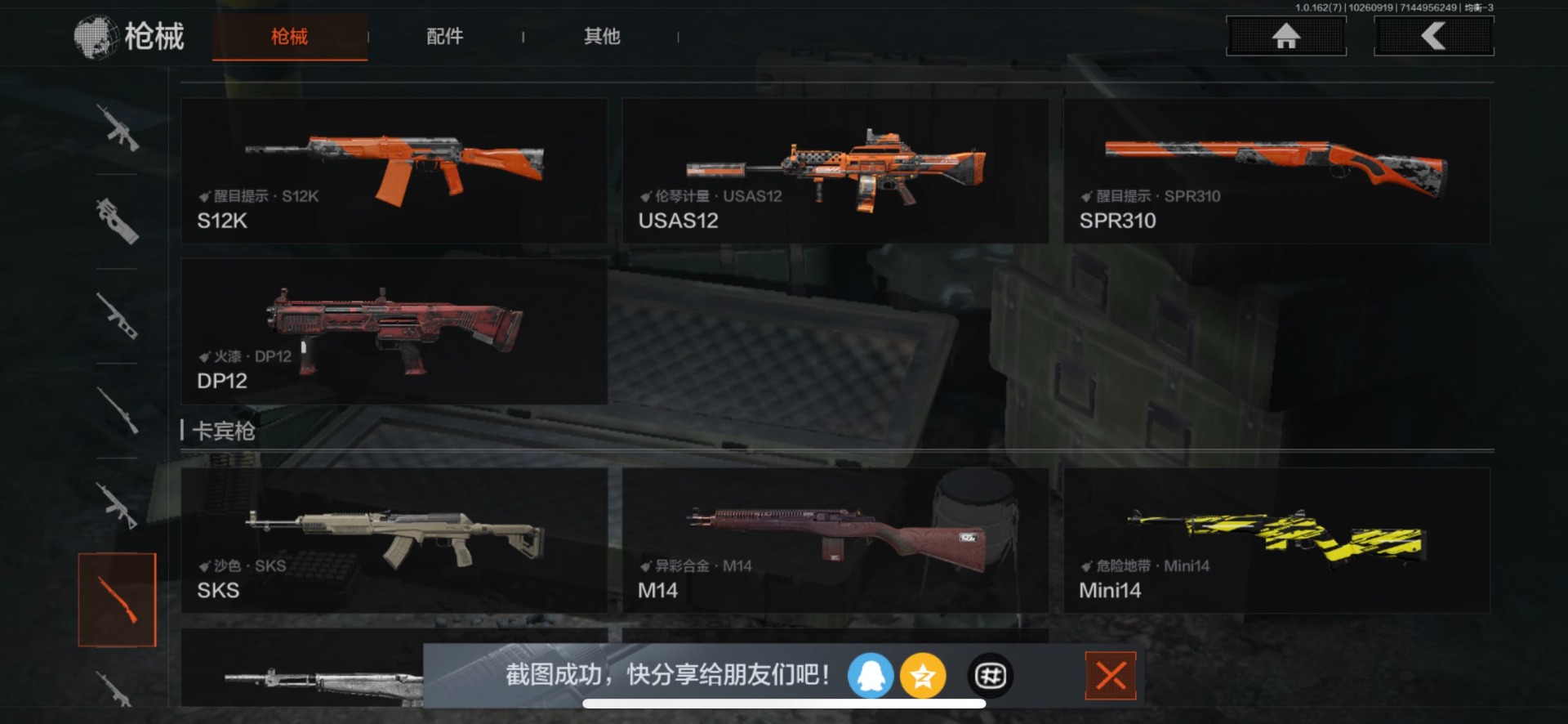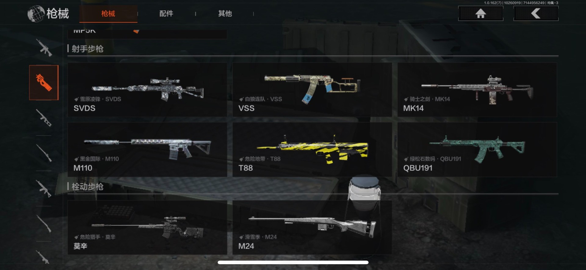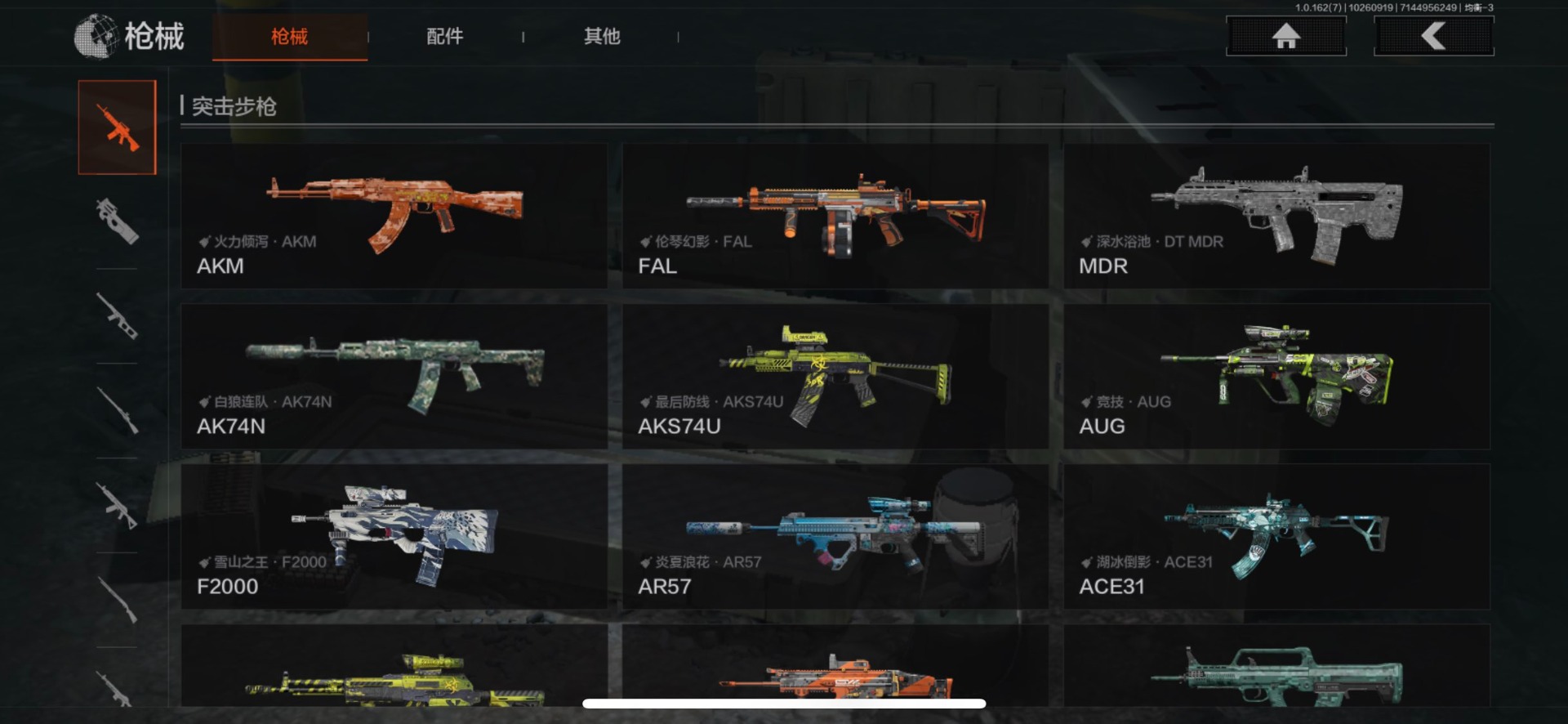 库存价值89.8 4近战武器 1金呛皮 可修改实名 【柯恩币数量】:1608 【近战武器】:来战·开山刀寒牙手刺工兵铲急袭弯刀 【金色呛皮】:伦琴幻影·fal 【紫色呛皮】:最后防线·aks74u骑士之剑·14竞技·aug伦琴计量·usas12湖冰倒影·ace31玄戈梨花·t