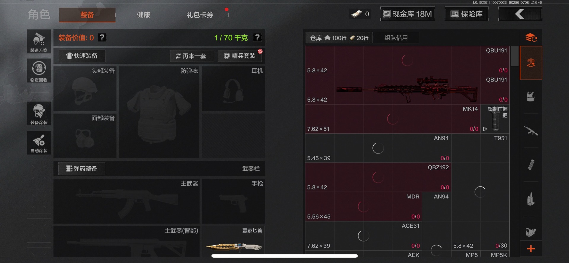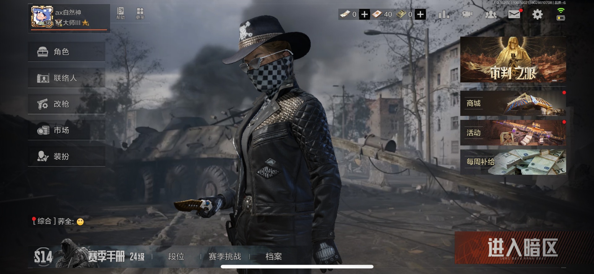[14237888]库存价值37.5 1近战武器 1金套装 4金呛皮 可修改实名 【柯恩币数量】:0 【角色装扮(金)】:机车朋克战衣 【近战武器】:赢家匕首 【金色呛皮】:骑士之剑·vss旗帜·aek棱光裂变·qbu191利齿风暴·m 【紫色呛皮】:赢家·f2000旗帜·svds