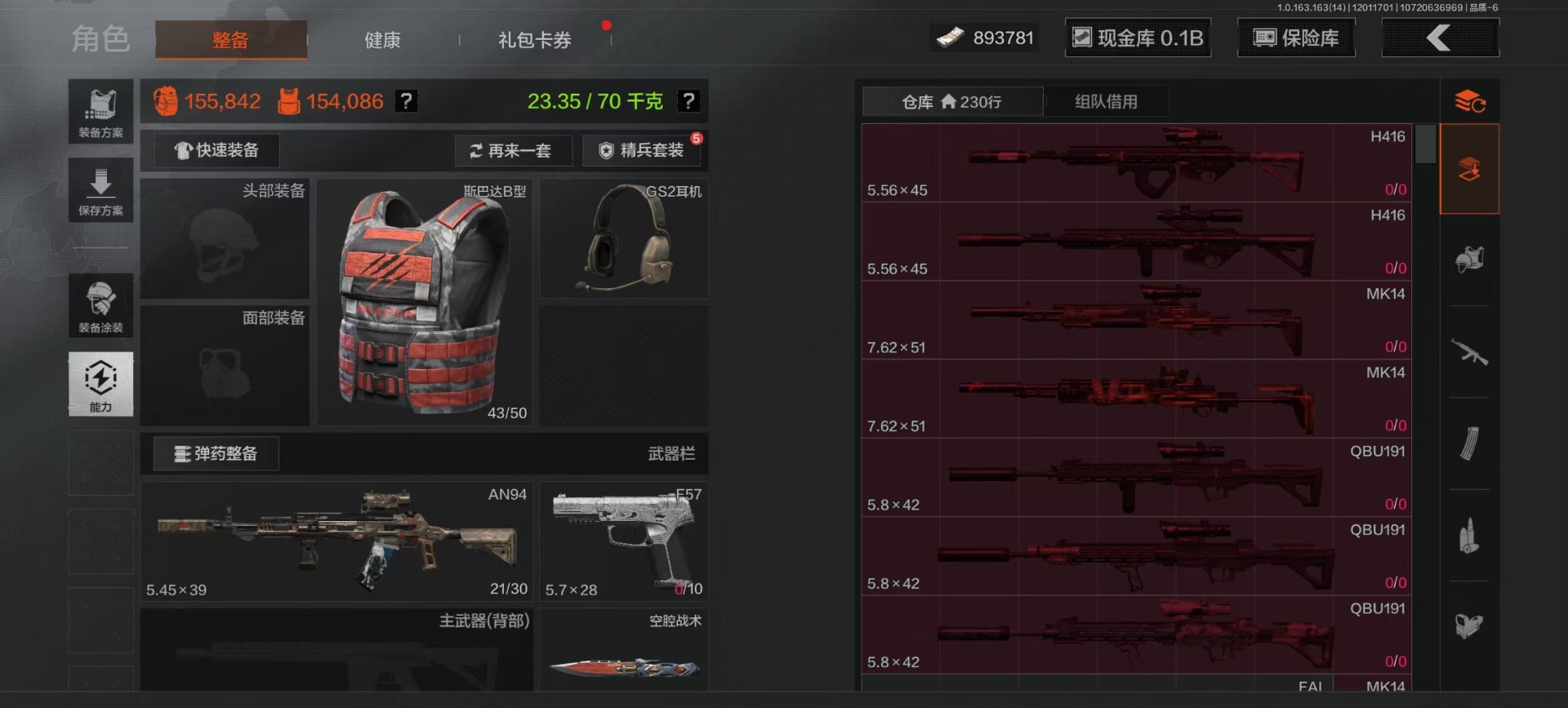 [14264614]库存价值188.1 2近战武器 4金呛皮 可修改实名 【柯恩币数量】:893781 【近战武器】:空腔战术野战折刀 【金色呛皮】:旧王圣谕·q191浮鳞影青·q192战术大师·aek战术大师·an94 【紫色呛皮】:武侍·sj16骤羽尖啸·m飨宴前兆·