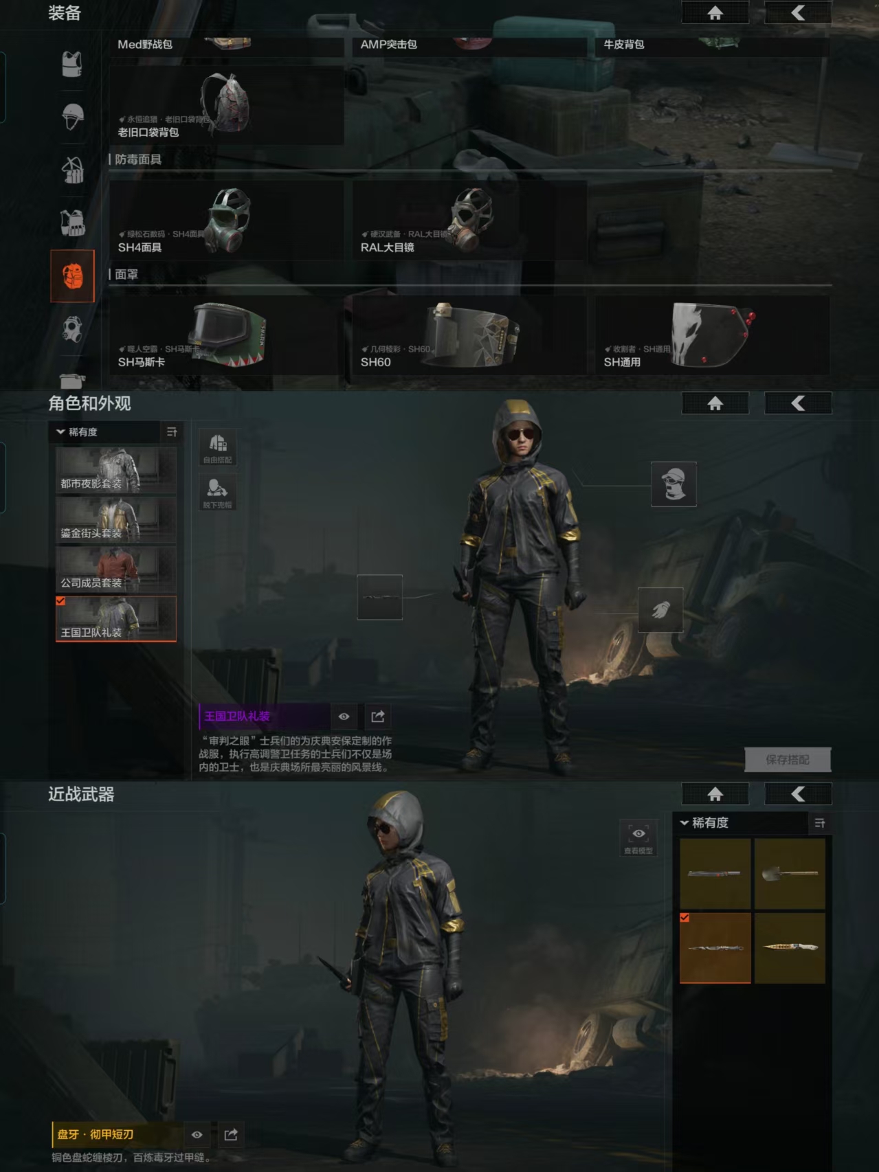 安卓q-等级30-资产22m 柯恩币473072 【呛皮】 告丧夜曲·ar57 旗帜·aek 旧王圣谕·q191 利齿风暴·m 旧王圣谕·vss 【套装】 都市夜影套装 鎏金街头套装 公司成员套装 王国卫队礼装 【近战武器】 盘牙·彻甲短刃 赢家匕首