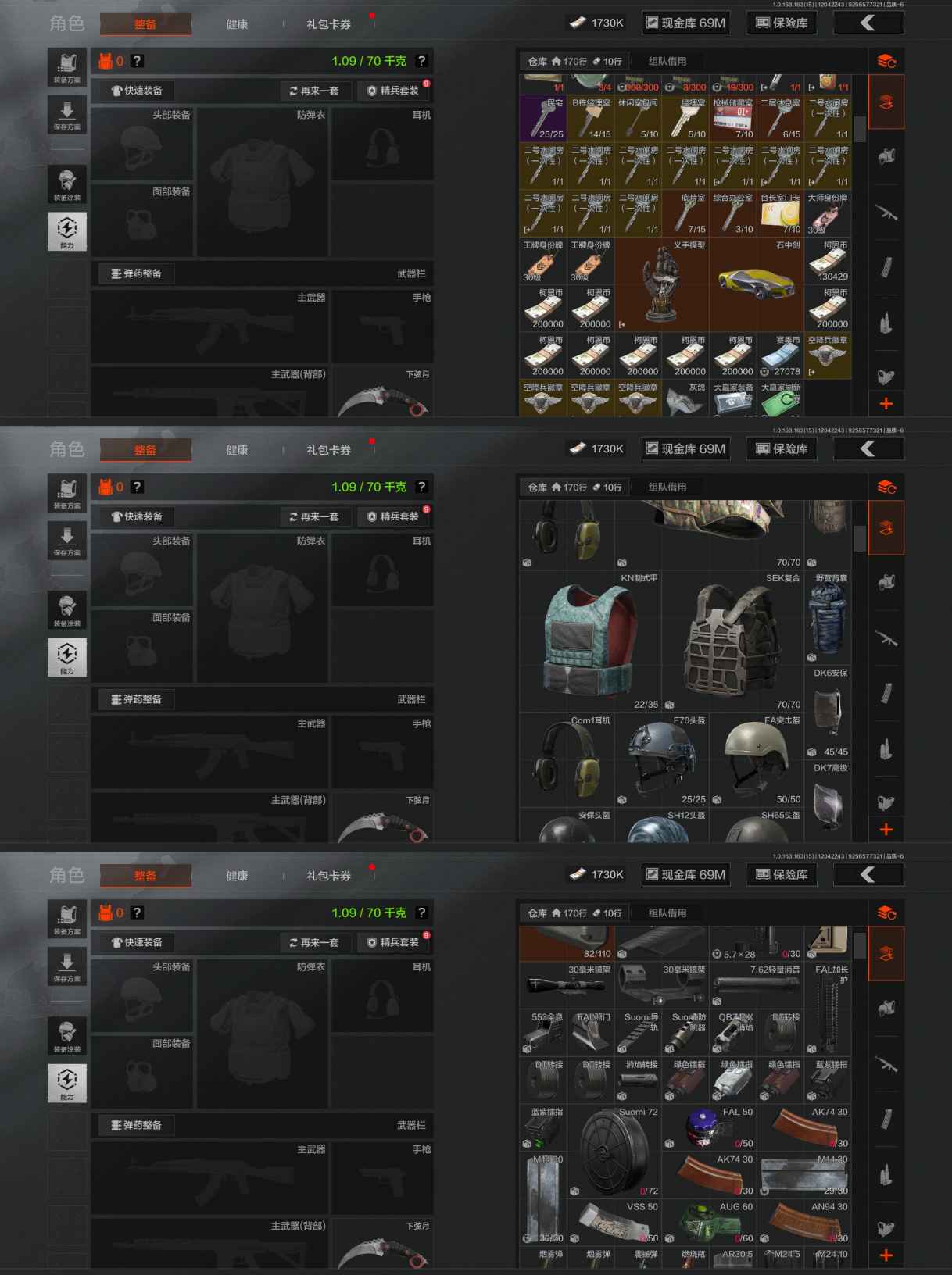 安卓q-等级30-仓库价值74.4m-科恩币1730k【现金库 69m】【呛皮】 包络战术·akm 竞技·fal 旧王圣谕·q191 利齿风暴·m 骑士之剑·vss 蓝色咆哮·h416 告丧夜曲·aug 旗軹·aek 冰河碎影·14 棱光裂变·qbu191 【刀皮】 下弦月 来战·开山刀 工兵铲