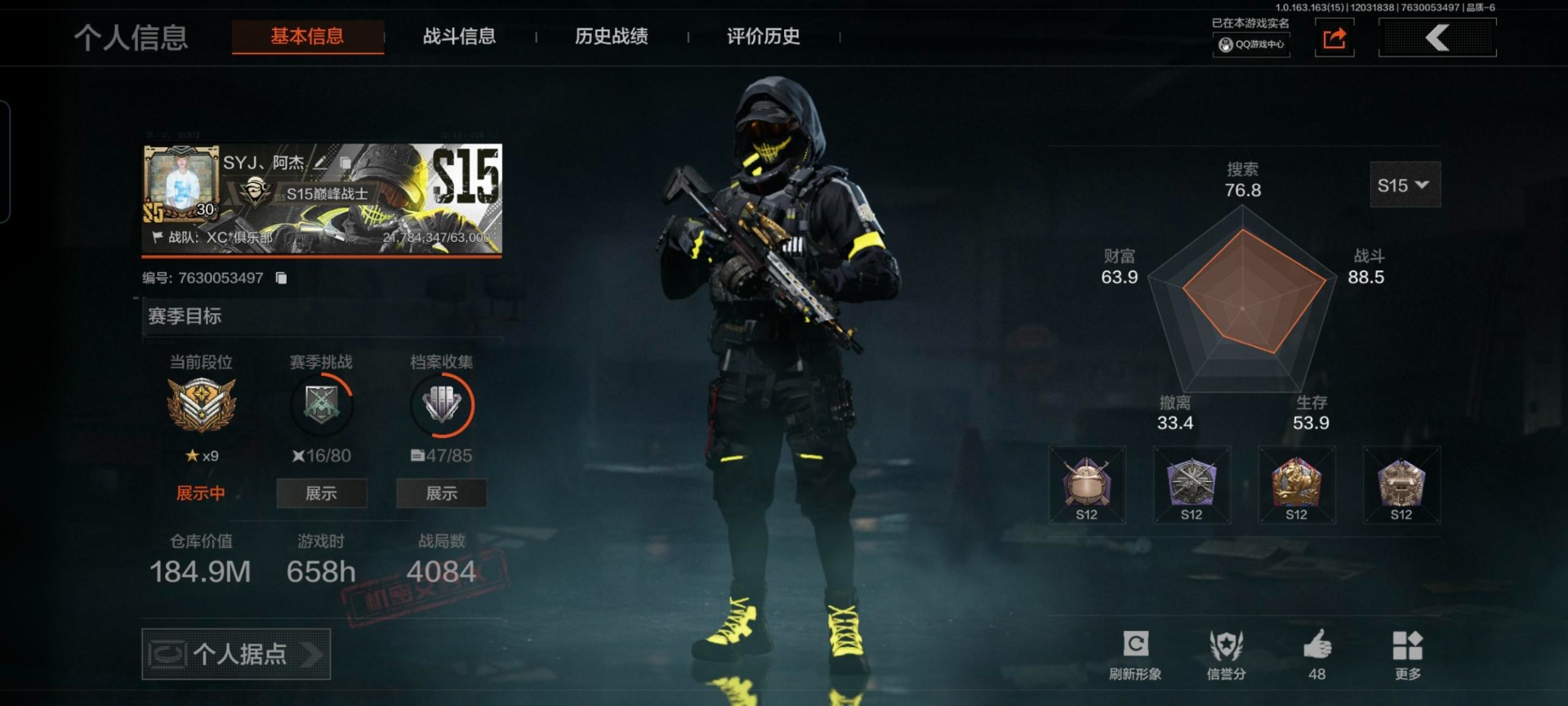 库存价值184.9 2近战武器 1金套装 5金呛皮 可修改实名 【柯恩币数量】:32253 【角色装扮(金)】:脉冲·马克西姆 【近战武器】:苍穹利爪工兵铲 【金色呛皮】:旧王圣谕·q191旗帜·aek告丧夜曲·aug告丧夜曲·ar57战术大师·an94 【紫色呛皮】:战术大师·a