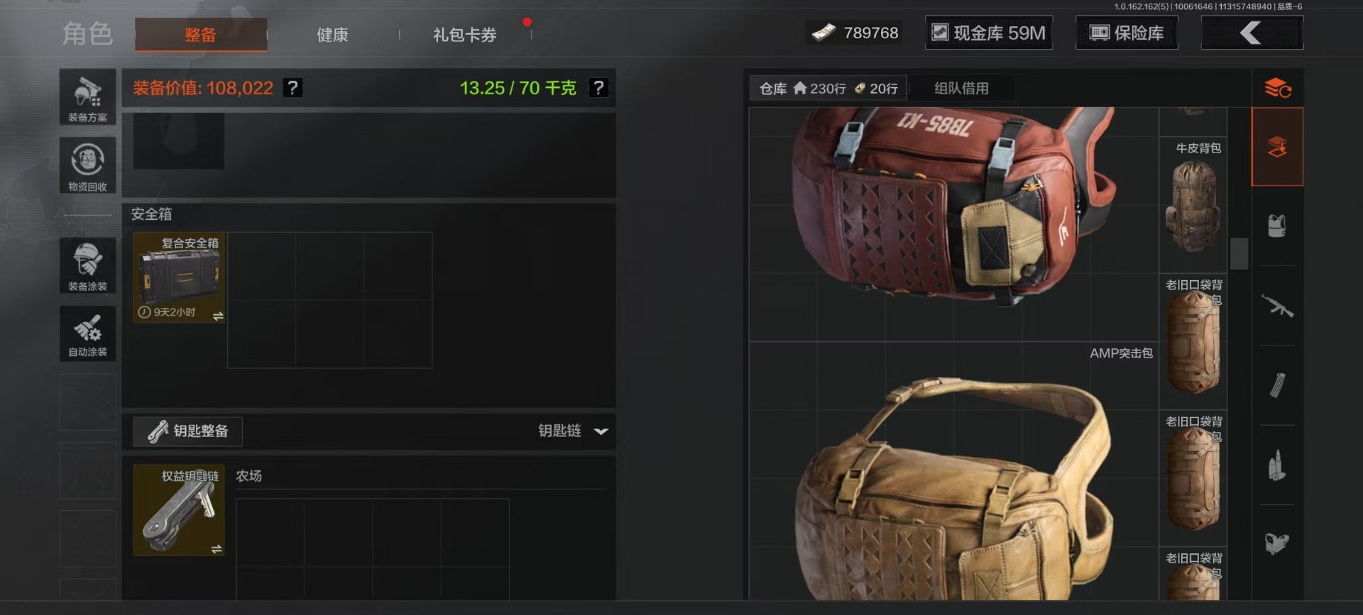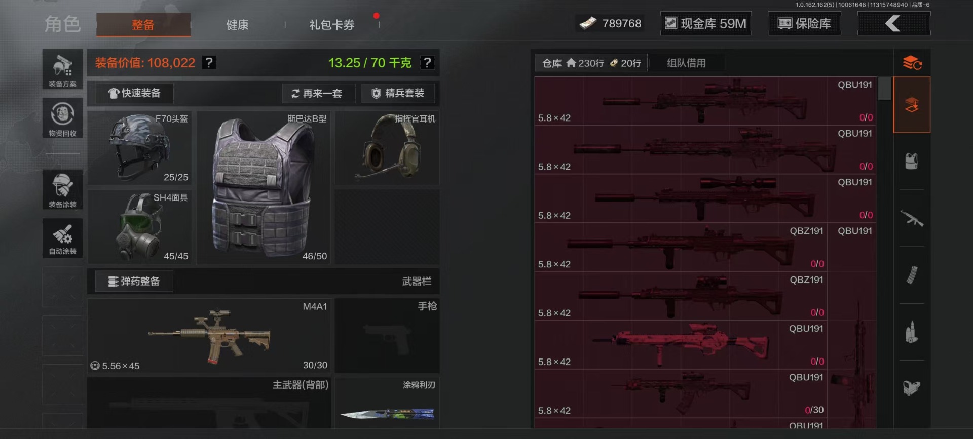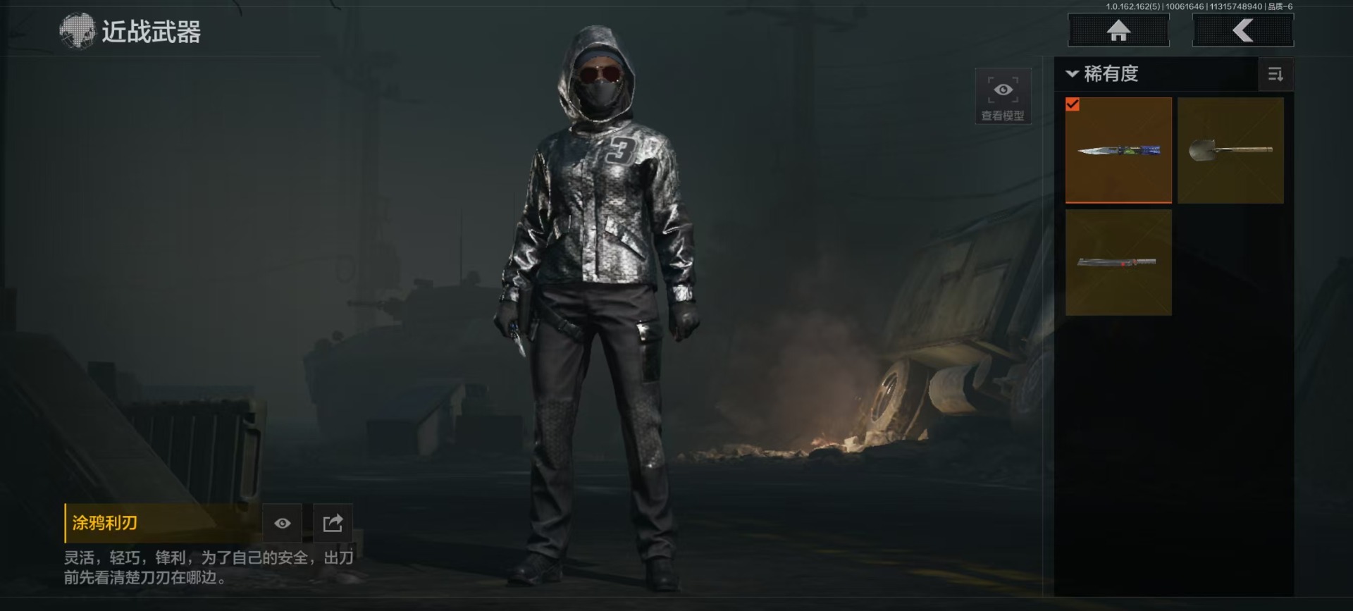 库存价值140.6 3近战武器 4金呛皮 可修改实名 【柯恩币数量】:789768 【近战武器】:来战·开山刀工兵铲涂鸦利刃 【金色呛皮】:竞技·fal告丧夜曲·ar57旧王圣谕·q191旧王圣谕·vss 【紫色呛皮】:最后防线·aks74u北国内卫·mdr鱼跃丹青·t85猩