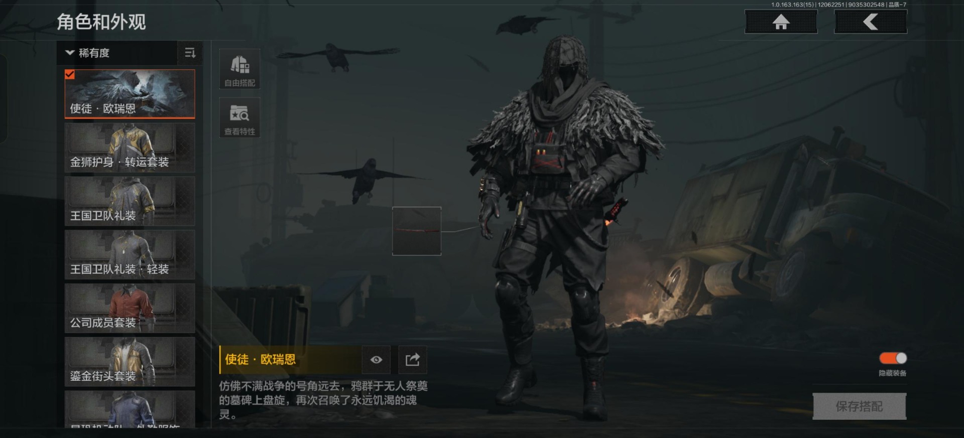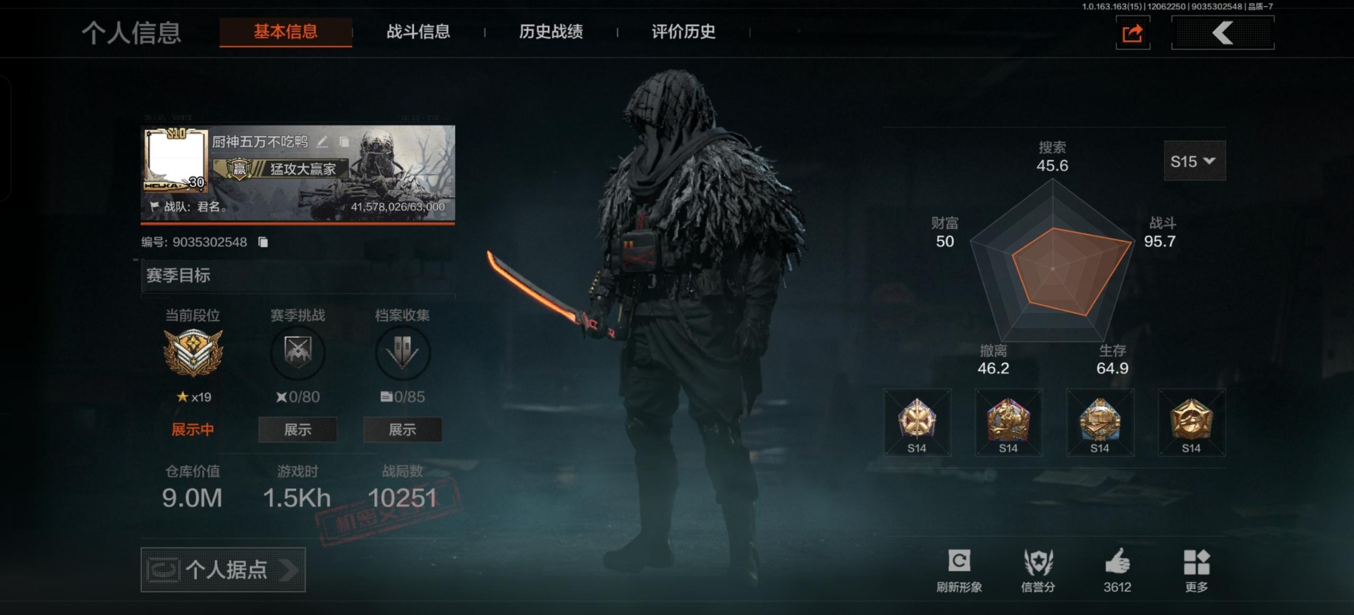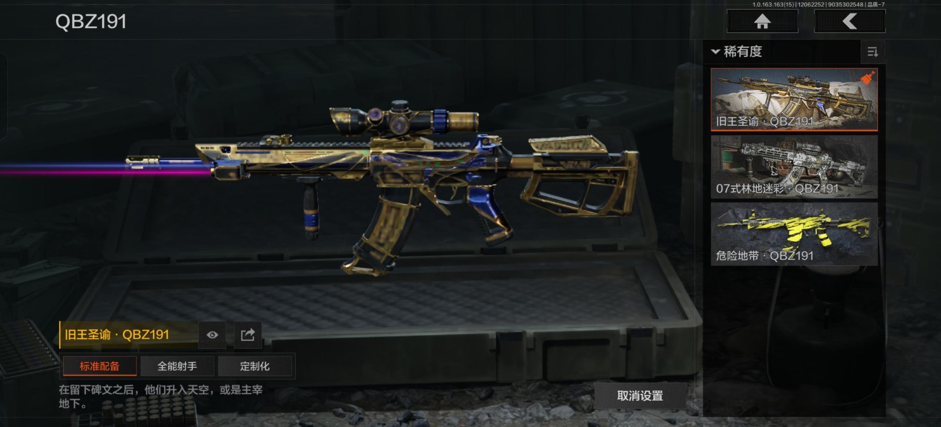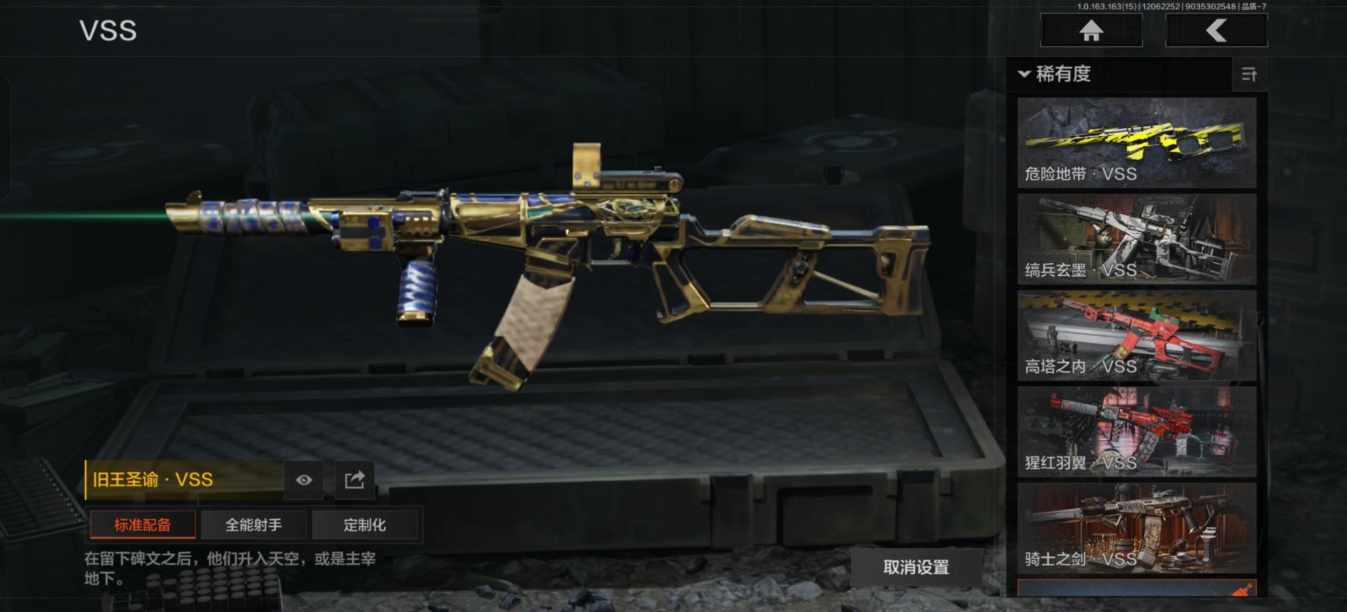 [14351579]库存价值9.0 3近战武器 1金套装 9金呛皮 可修改实名 【柯恩币数量】:2871 【角色装扮(金)】:使徒·欧瑞恩 【近战武器】:热能武器·补牢工兵铲来战·开山刀 【金色呛皮】:告丧夜曲·aug告丧夜曲·ar57利齿风暴·m浮鳞影青·q192旧王圣谕·
