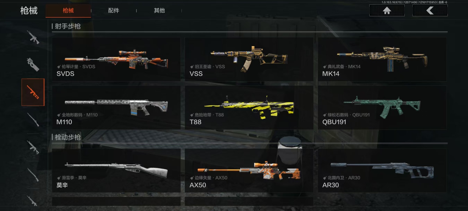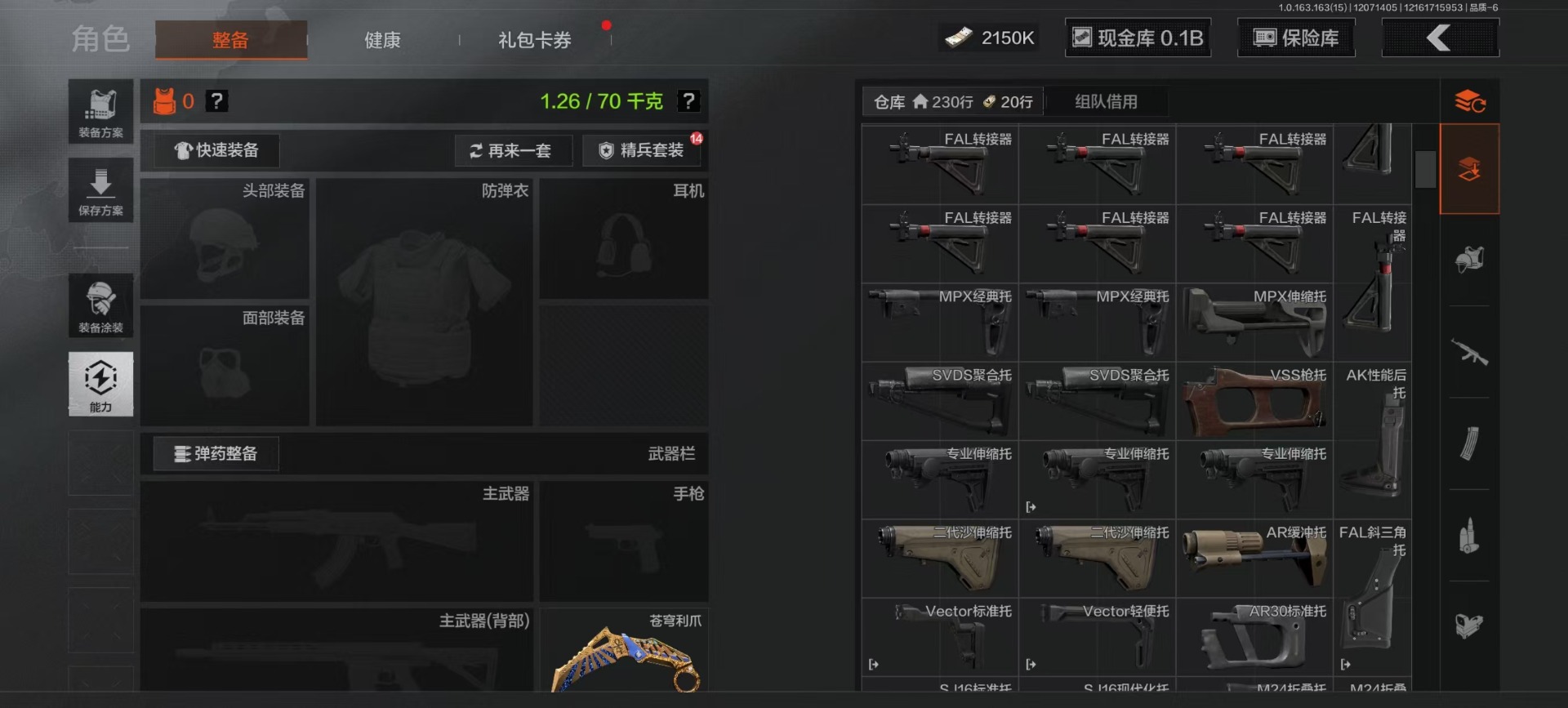 [14352854]库存价值172.1 5近战武器 5金呛皮 可修改实名 【柯恩币数量】:2150 【近战武器】:苍穹利爪s-07折刀热能武器·补牢工兵铲来战·开山刀 【金色呛皮】:告丧夜曲·aug利齿风暴·m旧王圣谕·q191旧王圣谕·vss战术大师·aek 【紫色呛皮】:高塔之内·vss利齿风暴·t03利齿风暴·t79猩红羽翼·vss鱼跃丹青·mcx火力倾泻·aug棱光裂变·ace31典礼武备·mk14伦琴计量·svds边缘矢量·ax50逆火玄石·dp-12粉绒臻选·sks全地形数码·m110北国内卫·mdr北国内卫·an94涂绘猎人·ar57缟兵玄墨·vss 【角色装扮(紫)】:都市夜影套装鎏金街头套装
