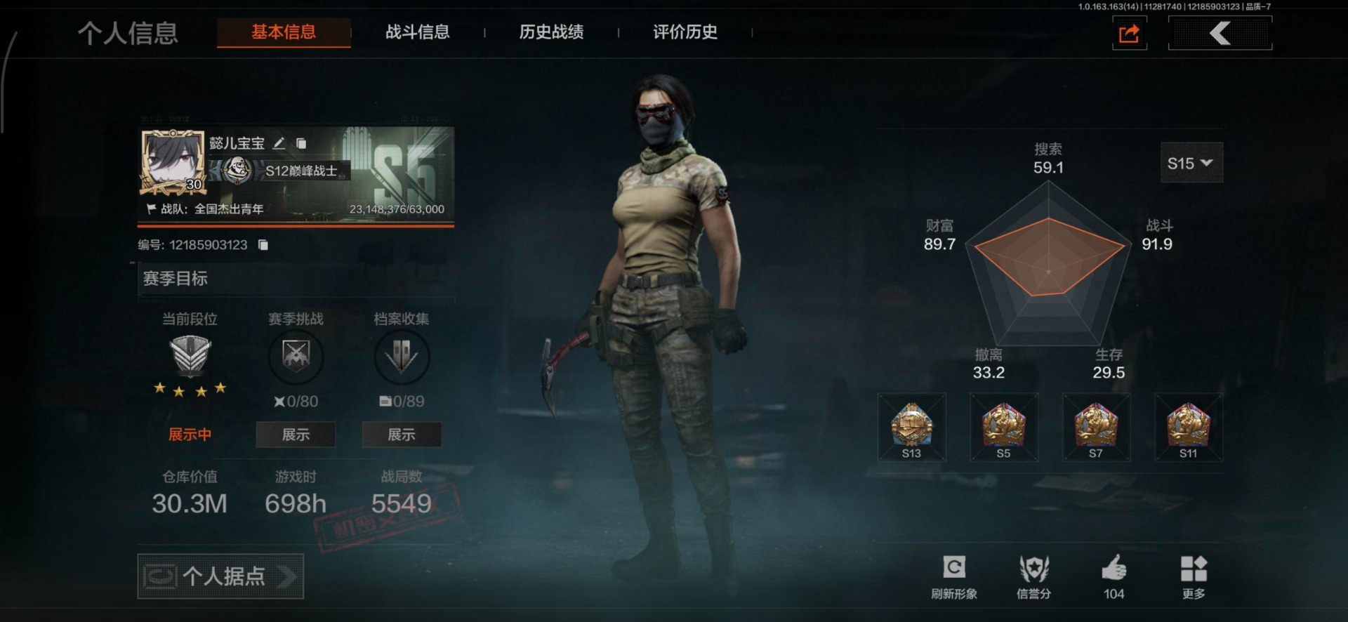 库存价值30.3 5近战武器 6金呛皮 可修改实名 【柯恩币数量】:1621 【近战武器】:突击匕首盘牙·彻甲短刃工兵铲来战·开山刀冬日冰镐 【金色呛皮】:旗帜·aek告丧夜曲·aug浮鳞影青·q192旧王圣谕·q191旧王圣谕·vss蓝色咆哮·h416 【紫色呛皮】: