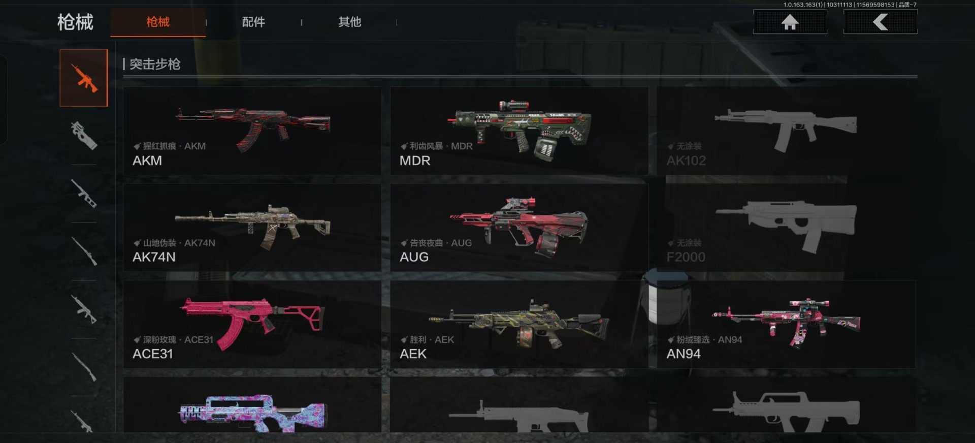 库存价值32.4 3近战武器 2金呛皮 可修改实名 【柯恩币数量】:127000 【近战武器】:s-07折刀工兵铲胜利军刀 【金色呛皮】:告丧夜曲·aug利齿风暴·m 【紫色呛皮】:粉绒臻选·an94超越自我·vect9超越自我·ar30利齿风暴·t03鱼跃丹青·m110