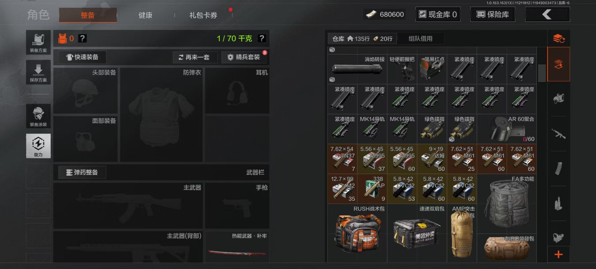 库存价值6.9 3近战武器 9金呛皮 可修改实名 【柯恩币数量】:680600 【近战武器】:收割者热能武器·补牢来战·开山刀 【金色呛皮】:战术大师·q192告丧夜曲·aug告丧夜曲·ar57利齿风暴·m伦琴幻影·ax50旧王圣谕·q191旧王圣谕·vss乌金黑曜