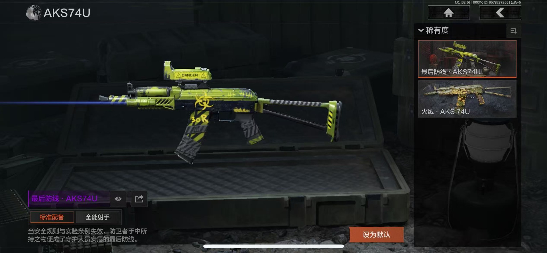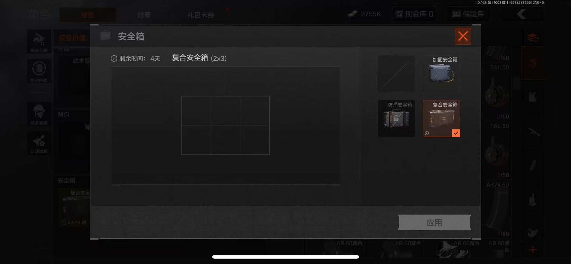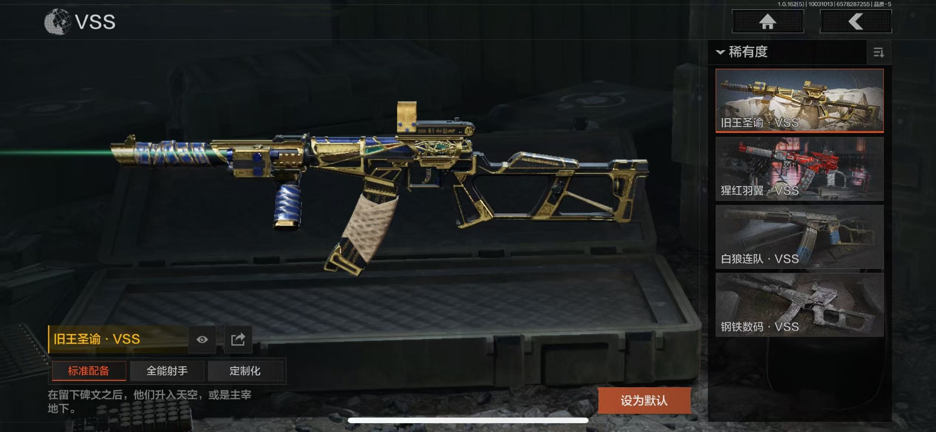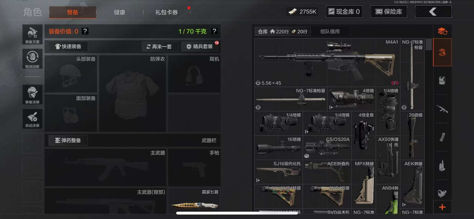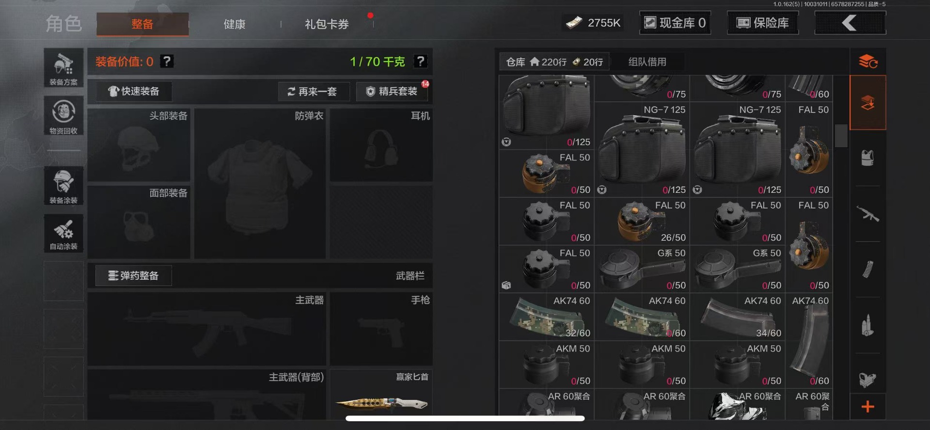 库存价值23.1 4近战武器 4金呛皮 可修改实名 【柯恩币数量】:2755 【近战武器】:来战·开山刀赢家匕首工兵铲胜利军刀 【金色呛皮】:竞技·fal利齿风暴·m旧王圣谕·q191旧王圣谕·vss 【紫色呛皮】:最后防线·aks74u猩红羽翼·vss来战·akm竞技