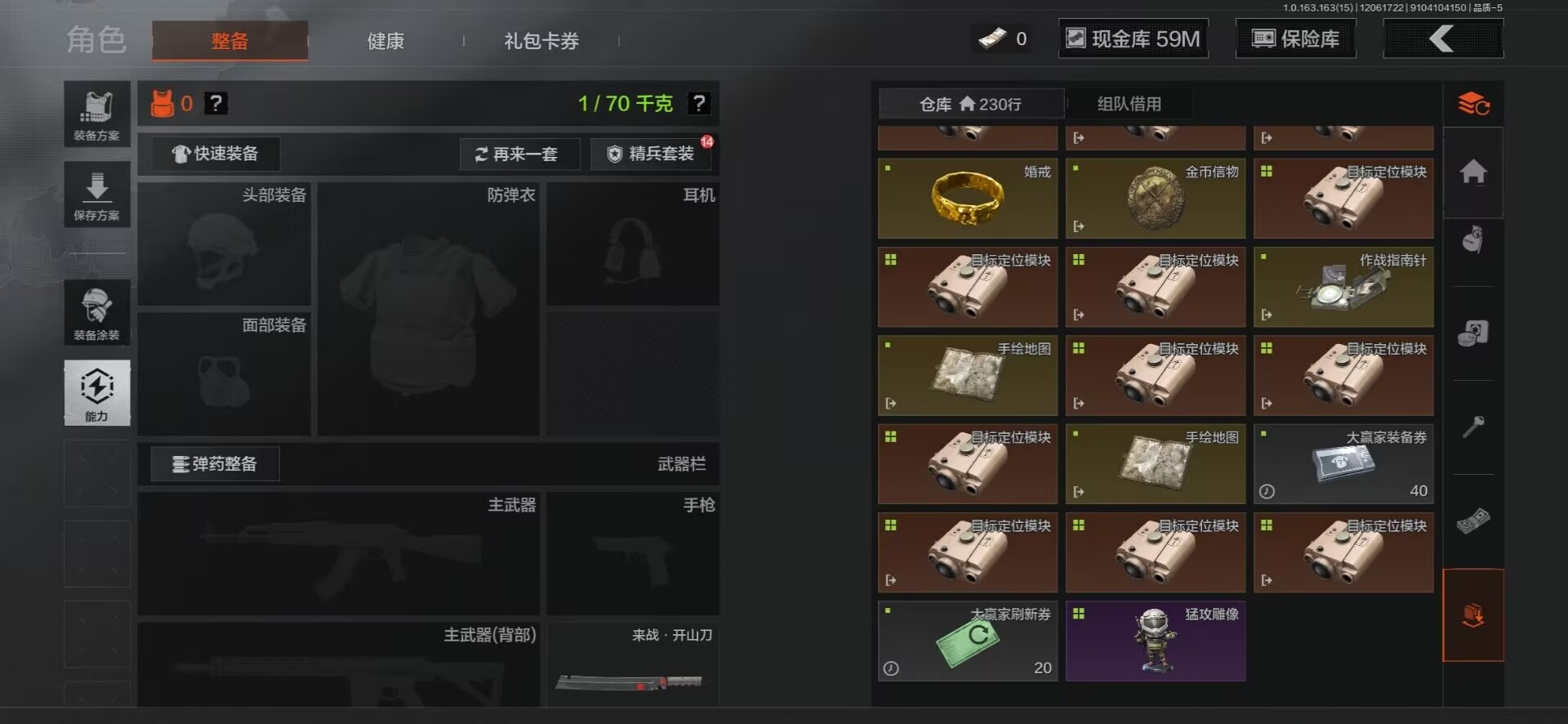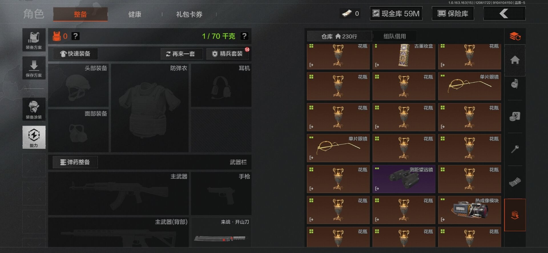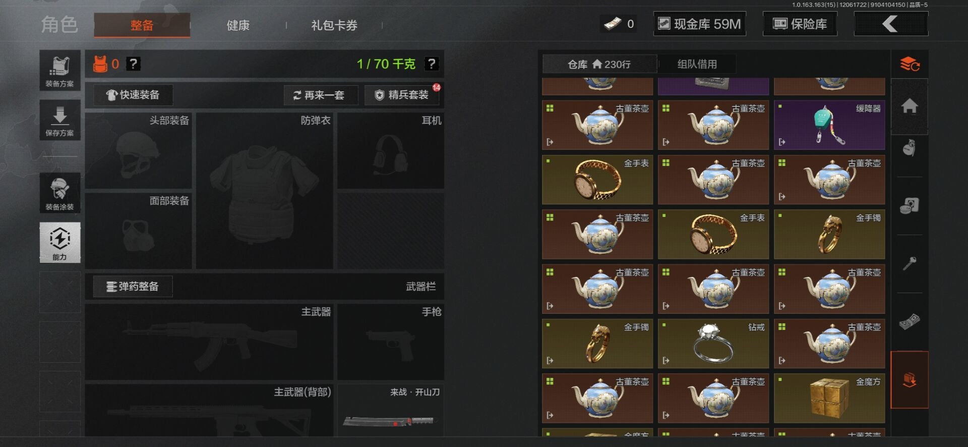 [14402163]库存价值233.2 2近战武器 2金呛皮 可修改实名 【柯恩币数量】:59 【近战武器】:工兵铲来战·开山刀 【金色呛皮】:伦琴幻影·fal旧王圣谕·q191 【紫色呛皮】:竞技·m110最后防线·aks74u火力倾泻·aug火力倾泻·akm火力倾泻·rpd战术大师·sj16战术大师·sks骑士之剑·t03伦琴计量·vect45秘域鎏金·rpk16粉绒臻选·an94炎夏浪花·h416来战·ak74n黑金国际·m4a1无畏·usas12和平之手·fal灰鼠幻歌·p90 【角色装扮(紫)】:王国卫队礼装鎏金街头套装