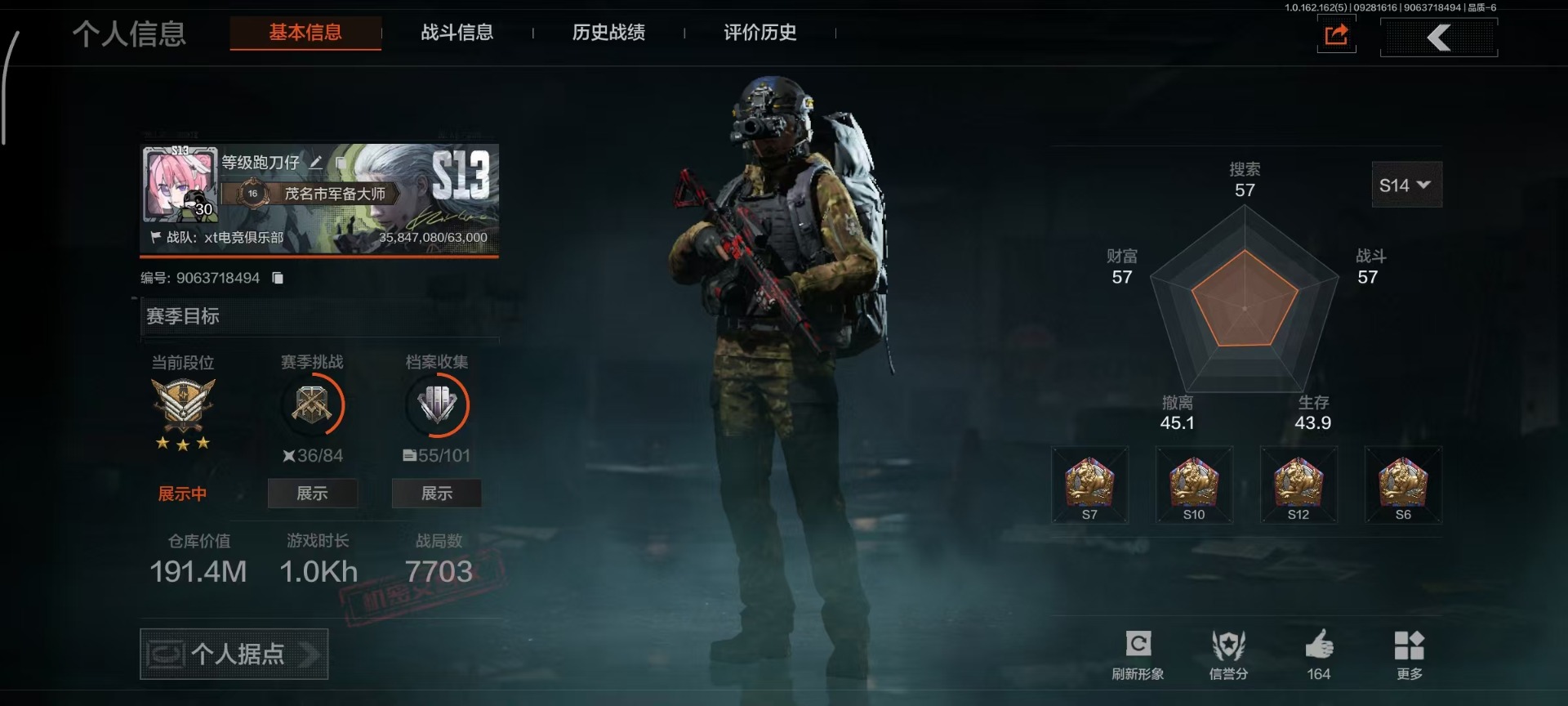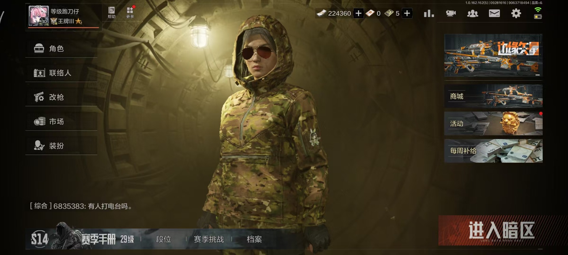 [14433581]库存价值191.4 4近战武器 2金呛皮 可修改实名 【柯恩币数量】:224360 【近战武器】:工兵铲来战·开山刀急袭弯刀野战折刀 【金色呛皮】:告丧夜曲·ar57蓝色咆哮·h416 【紫色呛皮】:竞技·m110骤羽尖啸·m猩红羽翼·vss鱼跃丹青·qbu191火力倾泻·aug火力倾泻·akm来战·ak74n德尔塔小队·m4a1深潜·f2000无畏·usas12神锋·vect45禁止访问·ump45白貂·f57骑士之剑·ace31骑士之剑·mk14 【角色装扮(紫)】:都市夜影套装金狮护身·转运套装鎏金街头套装