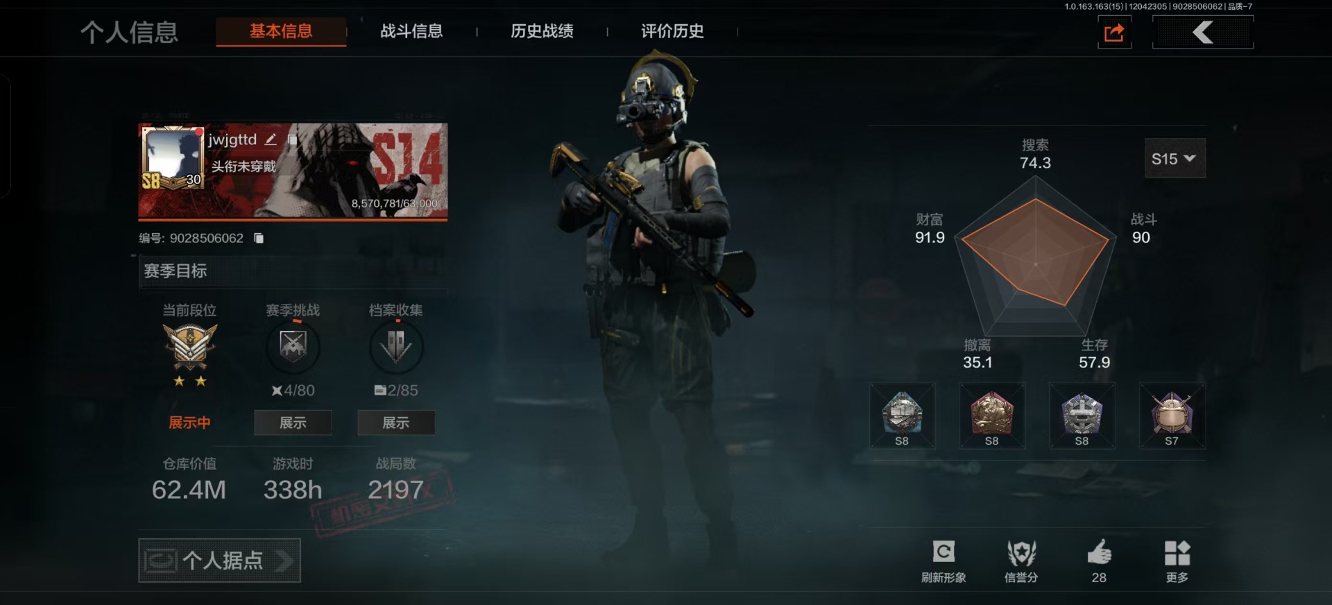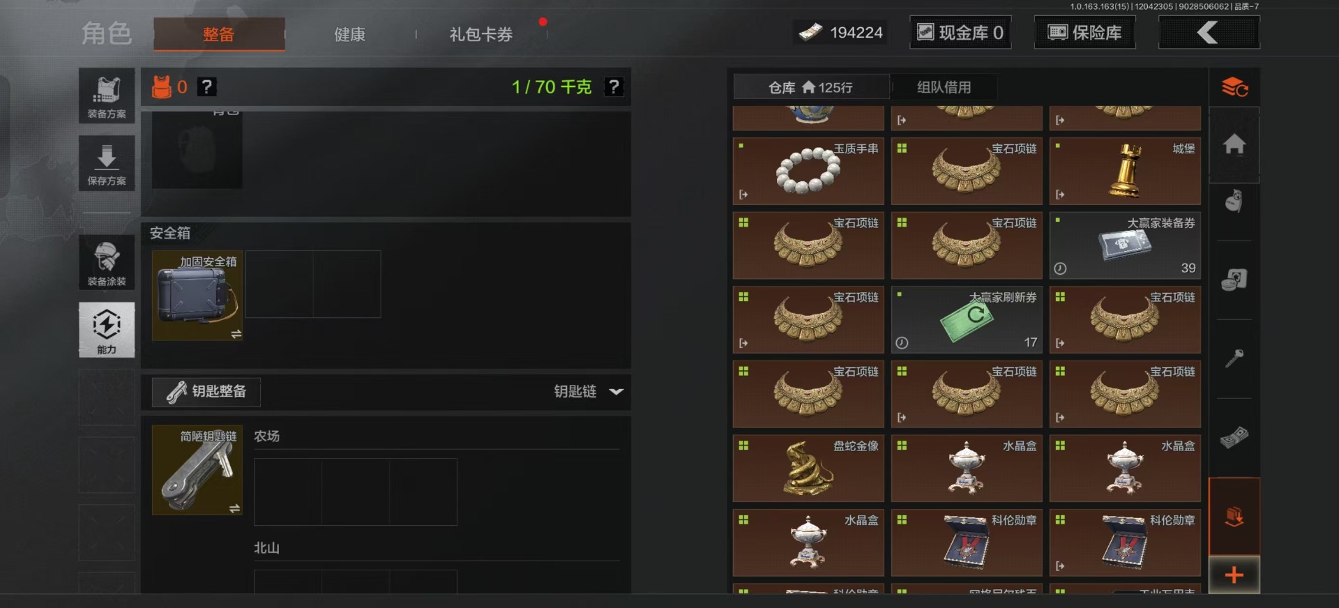 库存价值62.4 1近战武器 1金呛皮 可修改实名 【柯恩币数量】:194224 【近战武器】:工兵铲 【金色呛皮】:告丧夜曲·ar57 【紫色呛皮】:竞技·m110棱光裂变·莫辛火力倾泻·akm猩红羽翼·vss战术大师·svds粉绒臻选·an94战术大师·sj16战术大师·sks