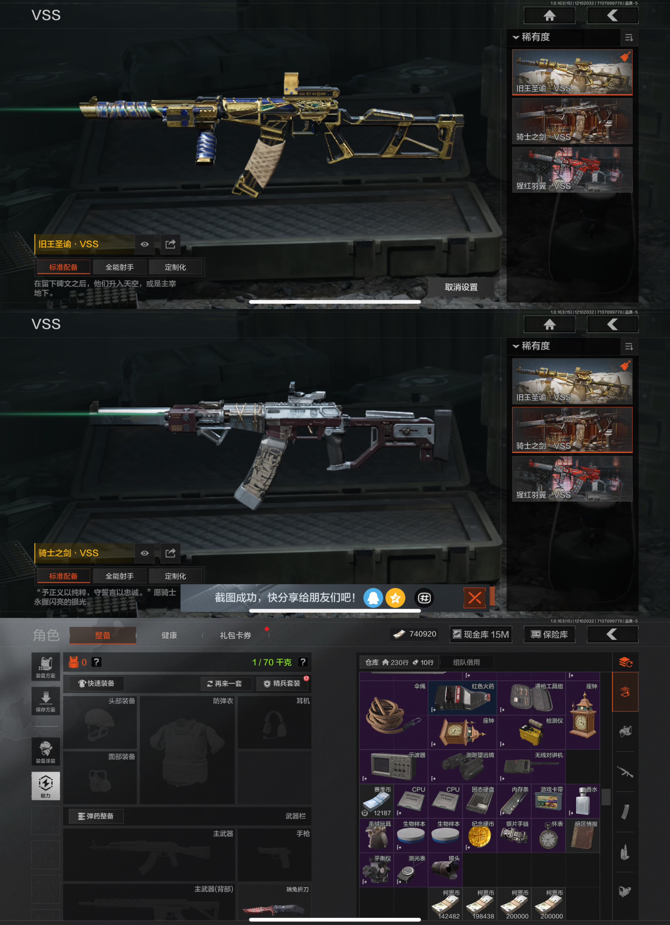 【仓库价值22.9m 工兵铲,瑞兔折刀,空腔战术,4金呛】苹果q-等级30-科恩币740920 【呛皮】 旧王圣谕·vss 包络战术·akm 伦琴幻影·fal 【刀皮】 瑞兔折刀 空腔战术 工兵铲