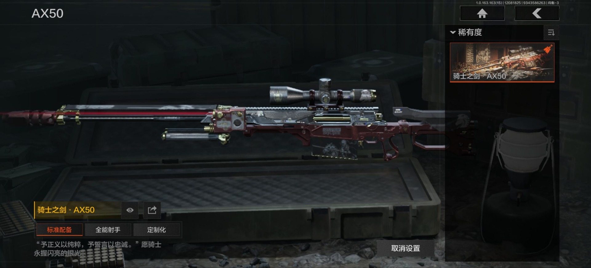 库存价值19.9 3近战武器 6金呛皮 可修改实名 【柯恩币数量】:359533 【近战武器】:空腔战术工兵铲百炼恒常 【金色呛皮】:旧王圣谕·q191战术大师·aek战术大师·an94包络战术·akm骑士之剑·ax50骑士之剑·vss 【紫色呛皮】:潜渊蛇鳞·m4a1骑士之