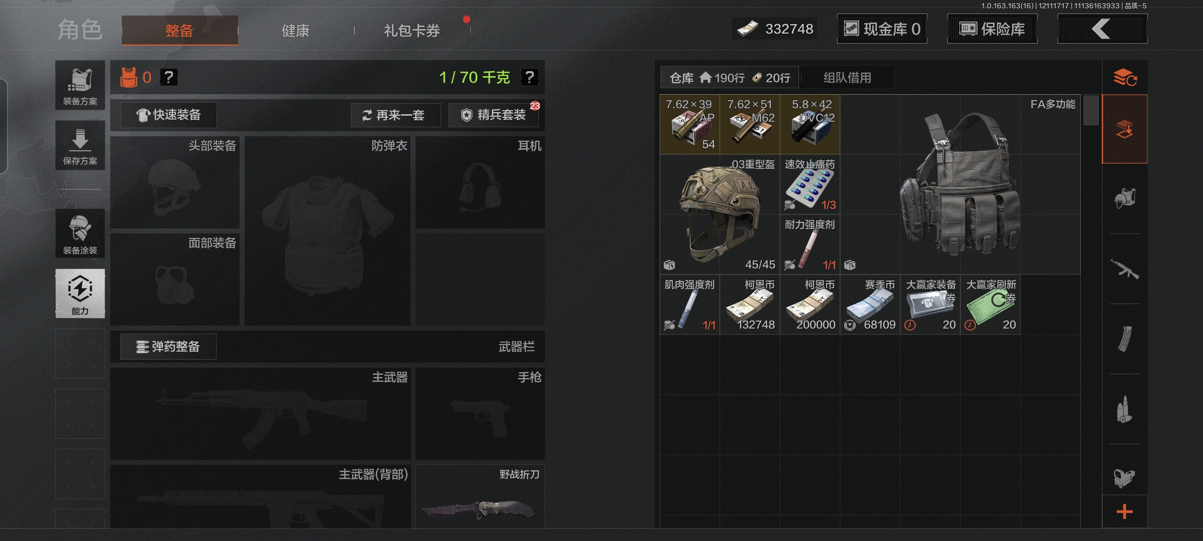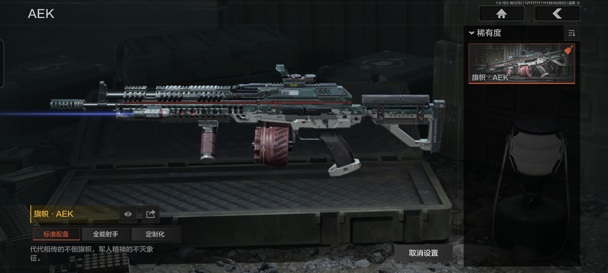 安卓q-等级30-仓库价值524.5k-科恩币332748-1金呛【呛皮】旗帜・aek【近战武器】野战折刀