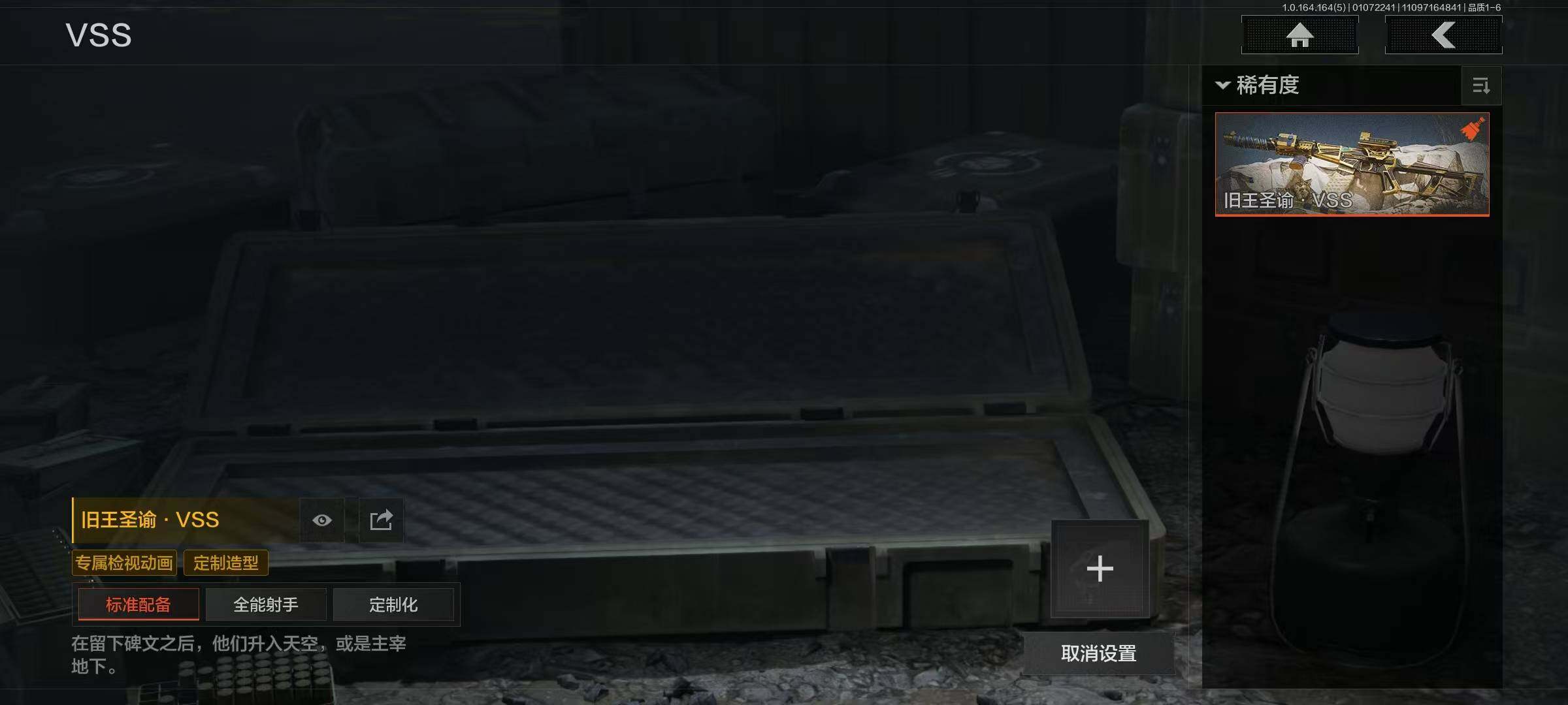 有二次 总资产9m ,金呛皮 旧王圣谕vss 旧王圣谕·q191 紫呛皮 典礼武备·s12k 骑士之剑·scar-l 鱼跃丹青·ak102 动感舞步·ace31