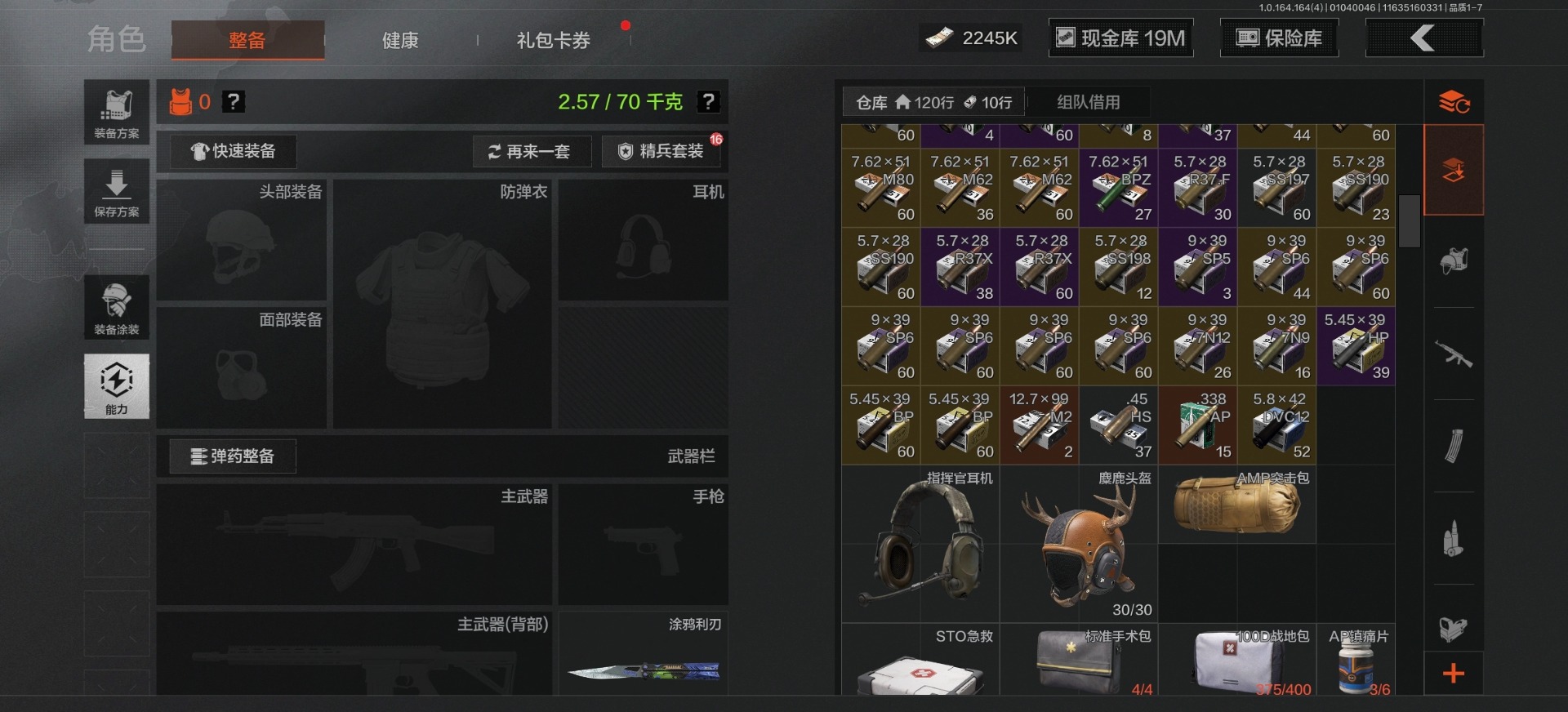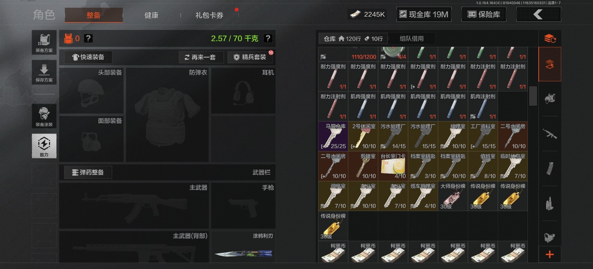 [15901990]库存价值25.3 3近战武器 现金库19m 可修改实名 【柯恩币数量】2245k 【近战武器】工兵铲来战·开山刀涂鸦利刃 【紫色呛皮】骑士之剑·akm骑士之剑·沙墨之鹦典礼武备·mcx旗帜脉冲·m110来战·ak74n北国内卫·mdr北国内卫·an94骑士之剑·aks74u骑士之剑·sj16