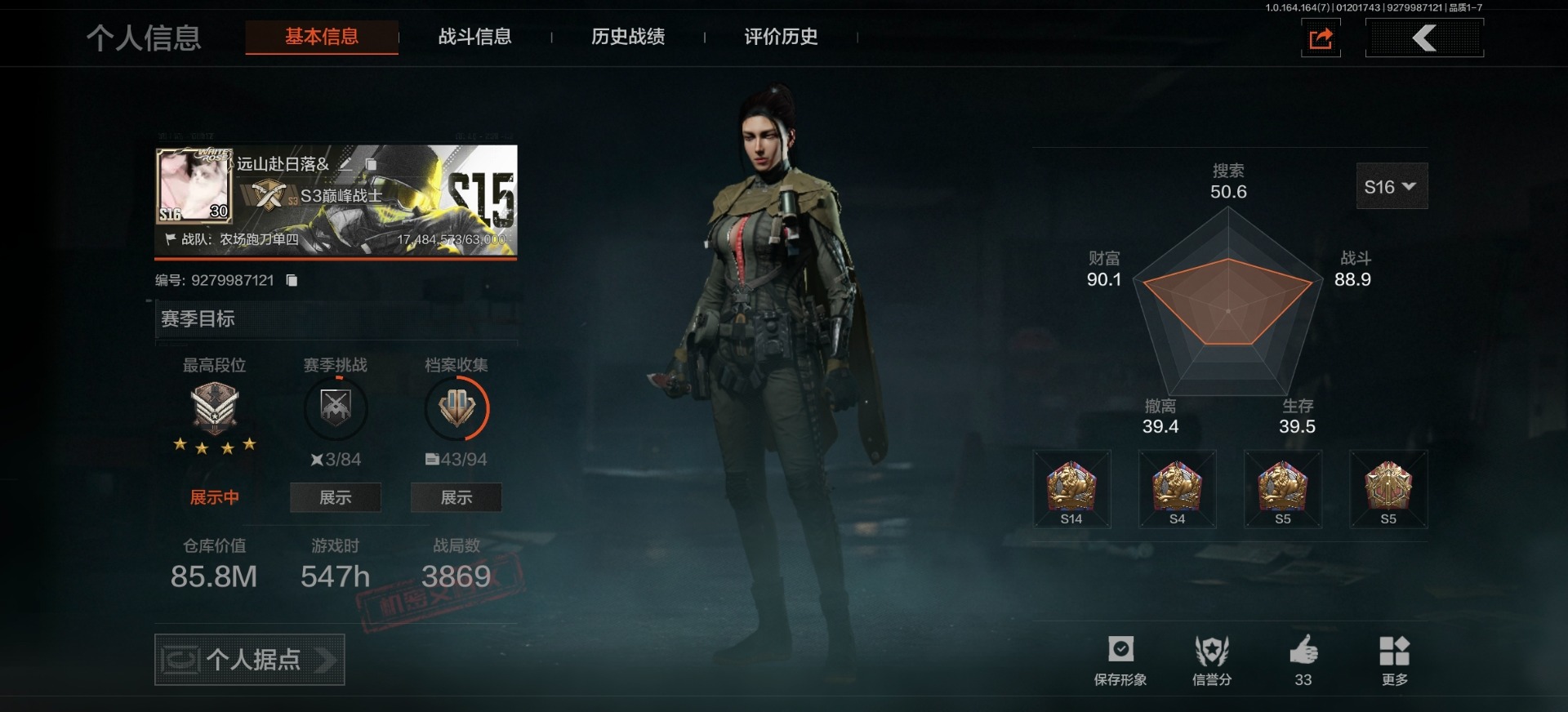 库存价值85.8 3近战武器 2金套装 8金呛皮 可修改实名 【柯恩币数量】185528 【角色装扮(金)】绅士西服白蔷薇·斯黛拉 【近战武器】工兵铲空腔战术急袭弯刀 【金色呛皮】告丧夜曲·ar57利齿风暴·m浮鳞影青·q192伦琴幻影·fal旧王圣谕·q191包络战