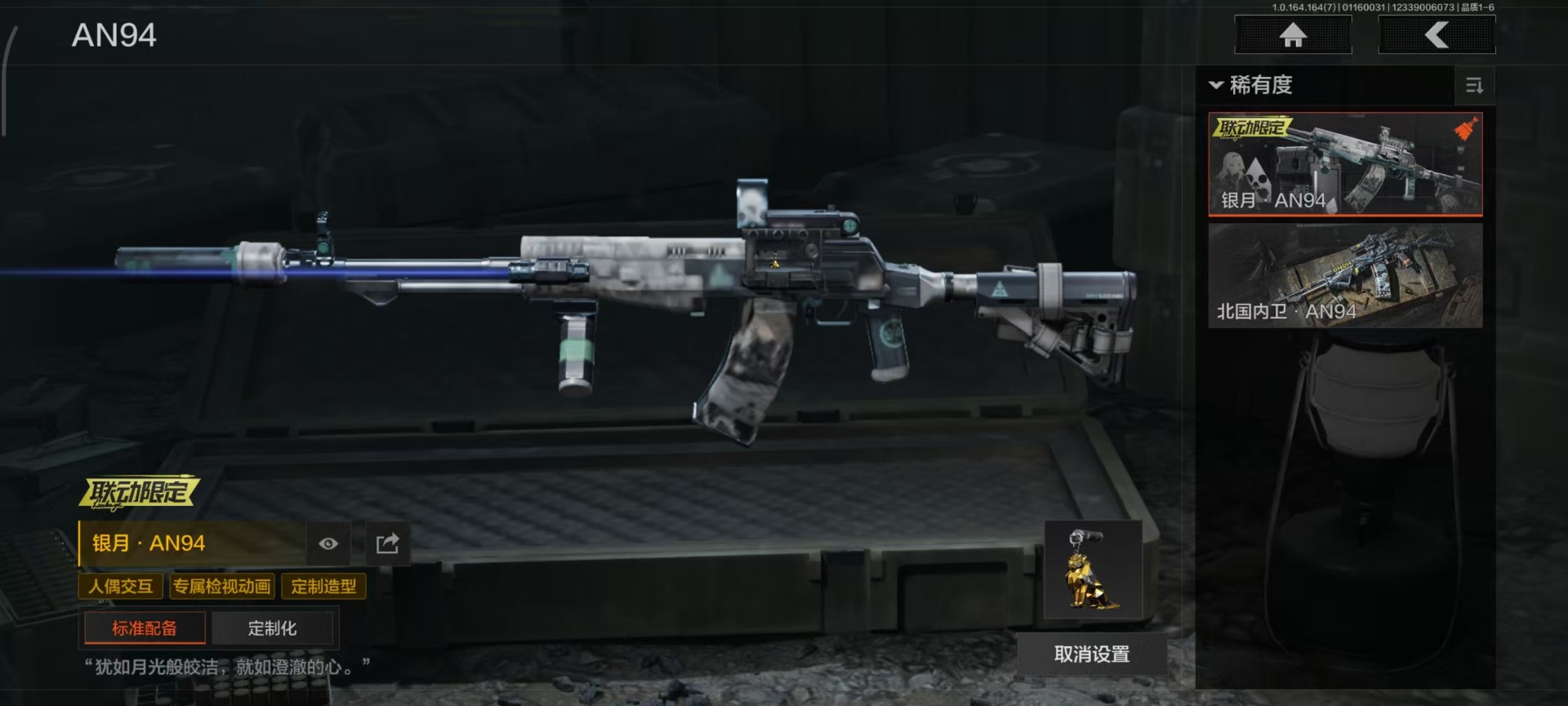 库存价值17.9 3近战武器 1金套装 5金呛皮 可修改实名 【柯恩币数量】1050 【角色装扮(金)】噤声者吉利服 【近战武器】工兵铲急袭弯刀涂鸦利刃 【金色呛皮】旧王圣谕·q191告丧夜曲·aug银月·an94旗帜·aek骑士之剑·vss 【紫色呛皮】猩红羽翼·vss旗帜·