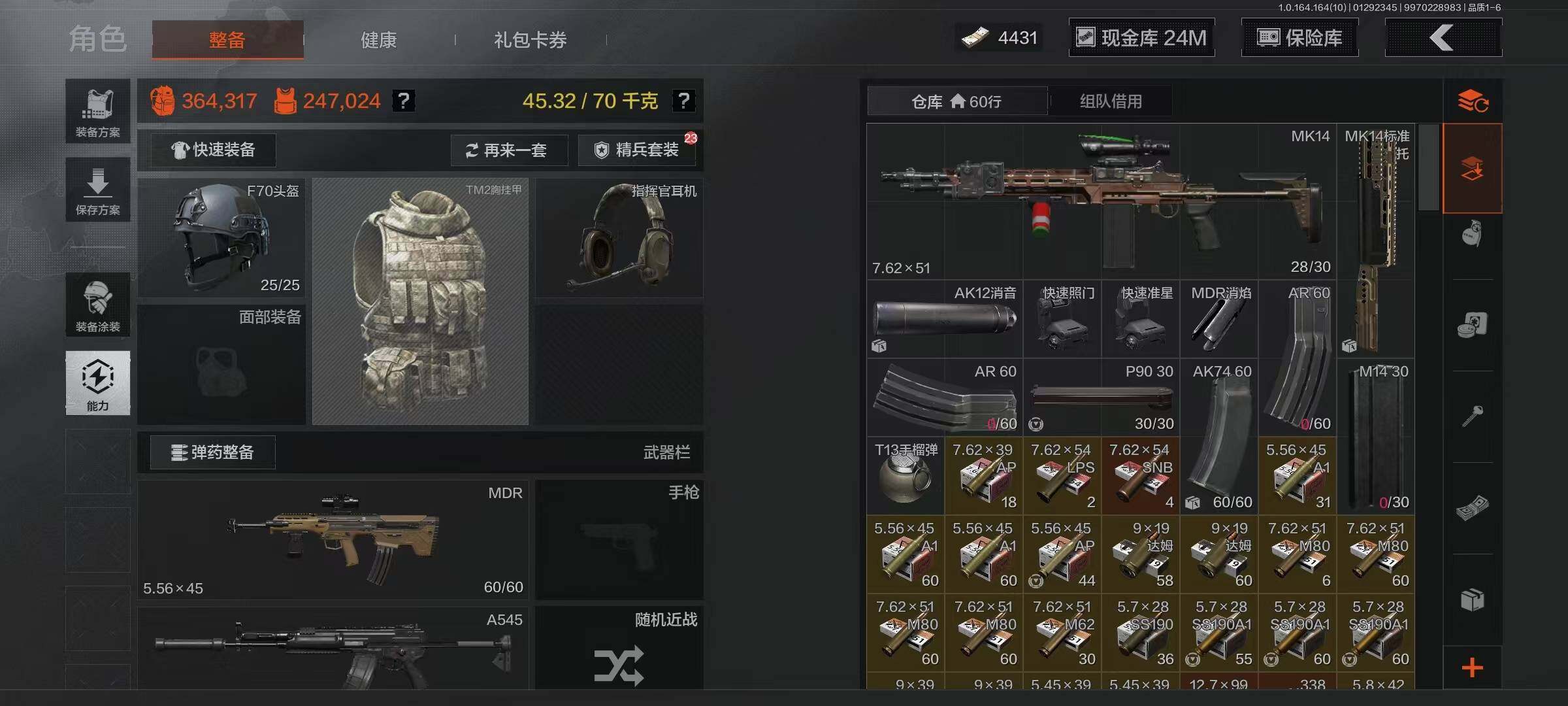 【aqzg1114】等级:30/段位:王牌/仓库价值百万:25.4/柯恩币:24451769/s-07折刀/热能武器补牢/工兵铲/战术大师an94