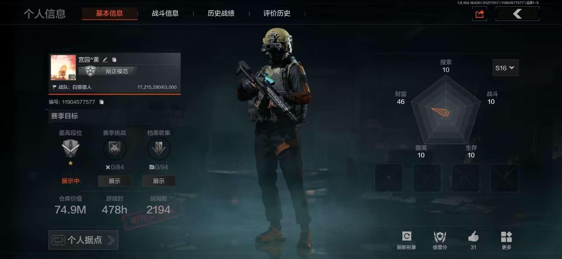[16180943]库存价值74.9 2近战武器 1金呛皮 可修改实名 【柯恩币数量】199401现金库74m 【近战武器】来战·开山刀涂鸦利刃 【金色呛皮】骑士之剑·vss 【紫色呛皮】竞技·mdr战术大师·f2000武侍·sj16棱光裂变·莫辛棱光裂变·akm竞技·aug来战·