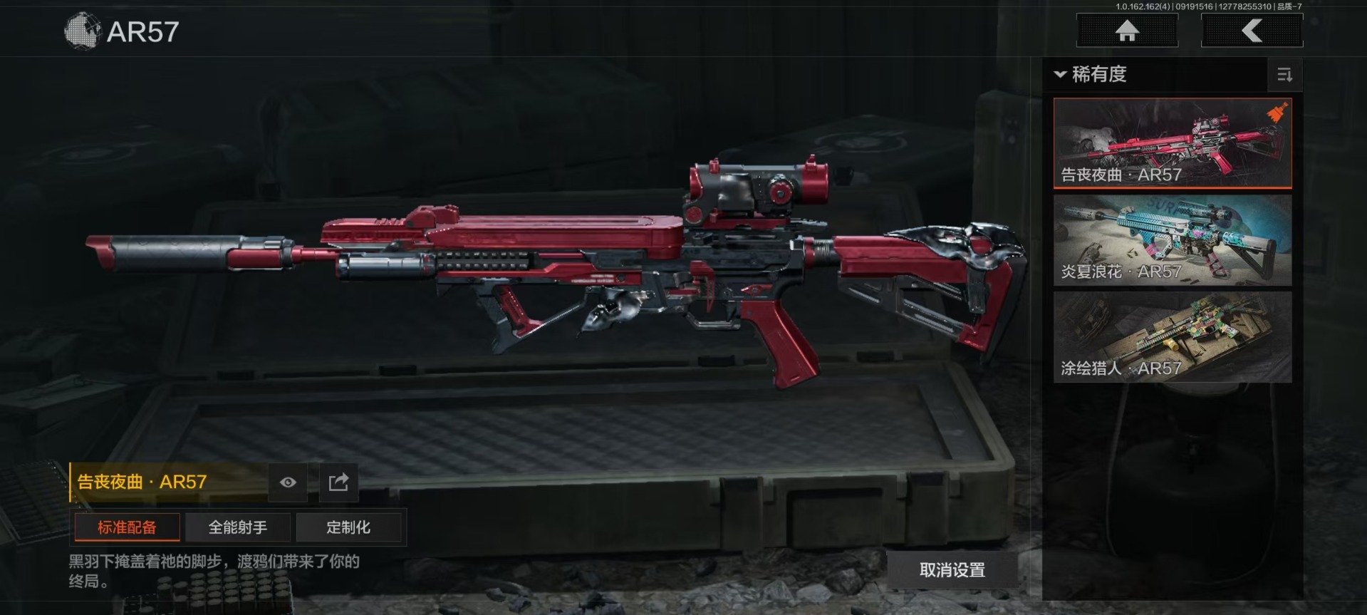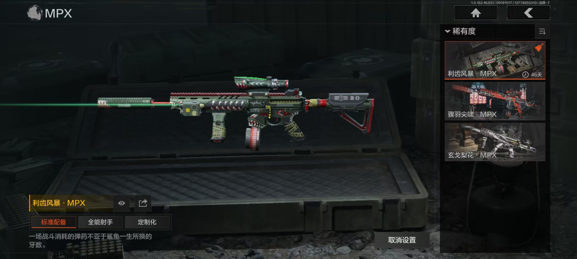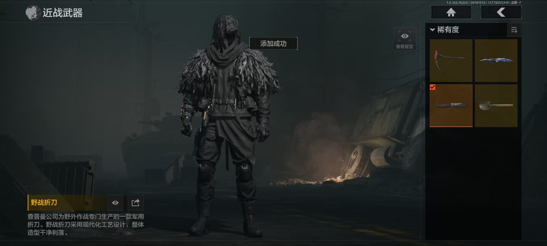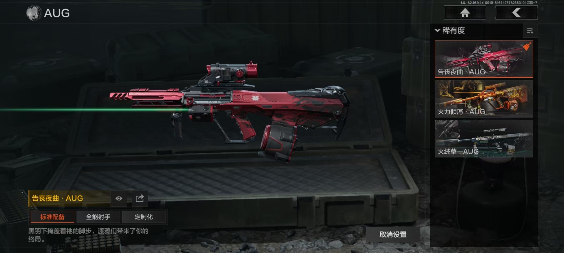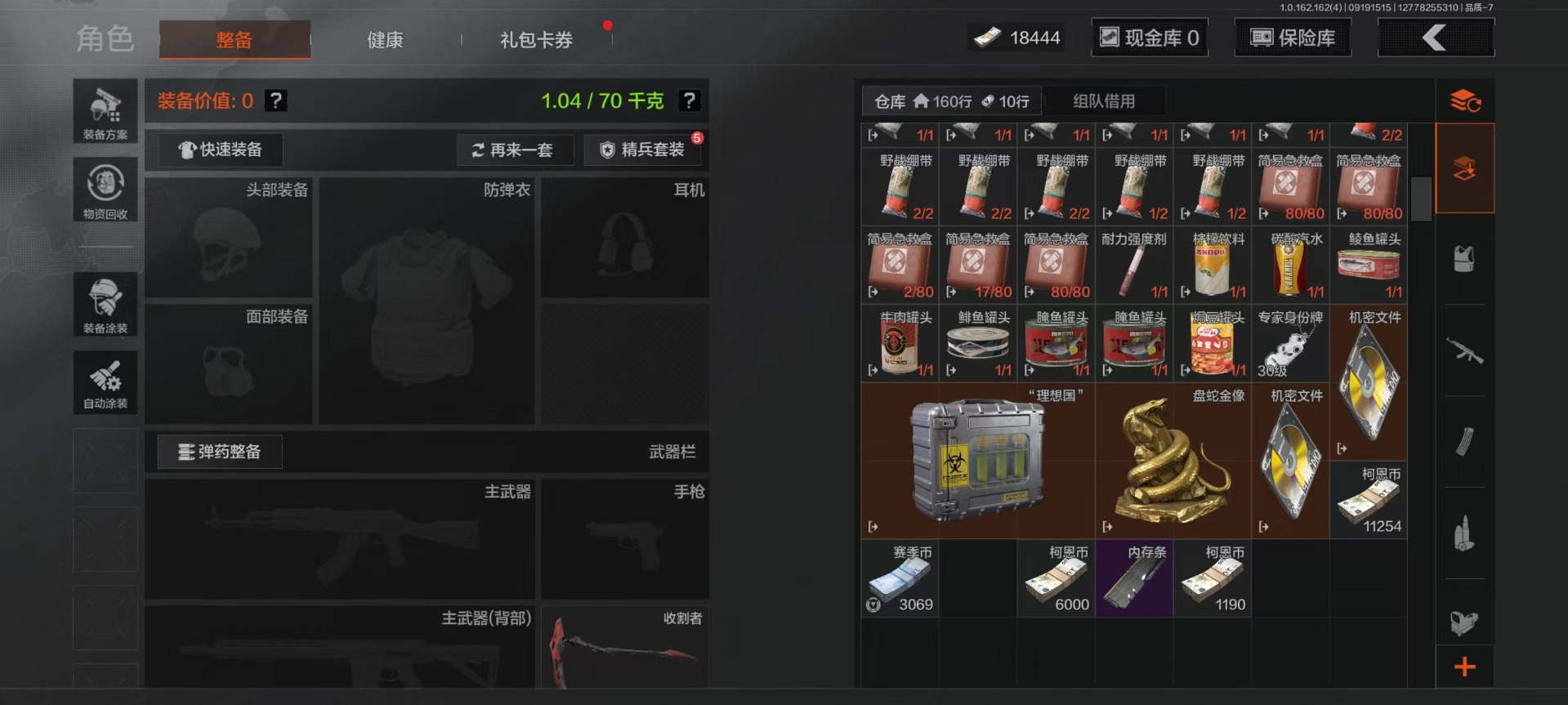 [16217380]库存价值12 4近战武器 1金套装 4金呛皮 可修改实名 【柯恩币数量】18444 【角色装扮(金)】使徒·欧瑞恩 【近战武器】s-07折刀工兵铲收割者野战折刀 【金色呛皮】告丧夜曲·ar57利齿风暴·m告丧夜曲·aug旗帜·aek 【紫色呛皮】骤羽尖啸·mp