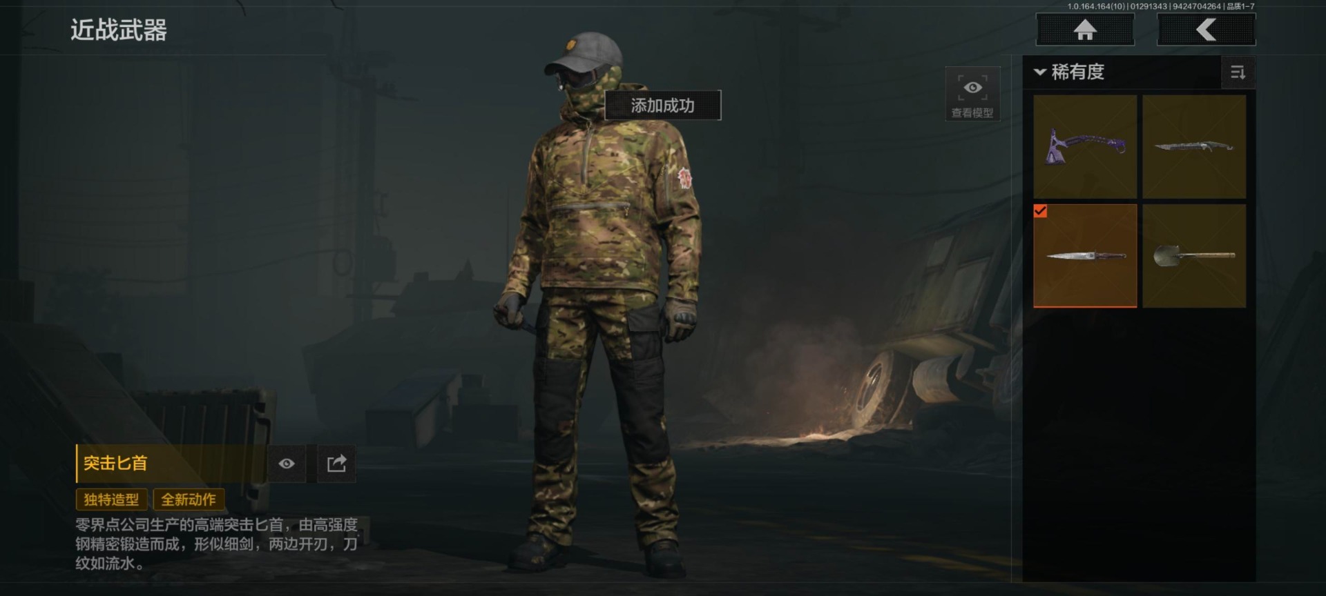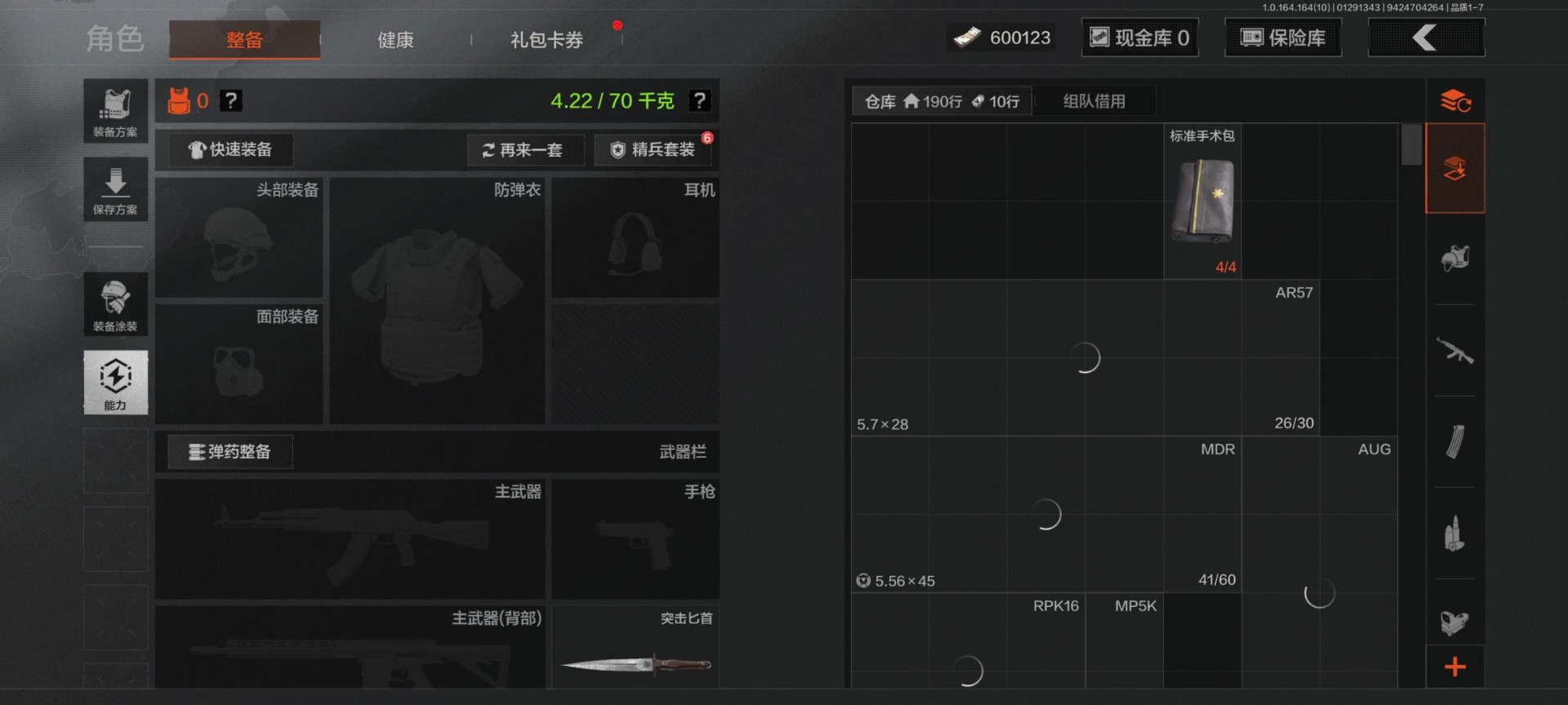 [16282766]库存价值1.7 4近战武器 可修改实名 【柯恩币数量】600123 【近战武器】突击匕首工兵铲鲨鱼刀冰海战斧 【紫色呛皮】骤羽尖啸·m4a1莫克斯·aks74u涂鸦·m