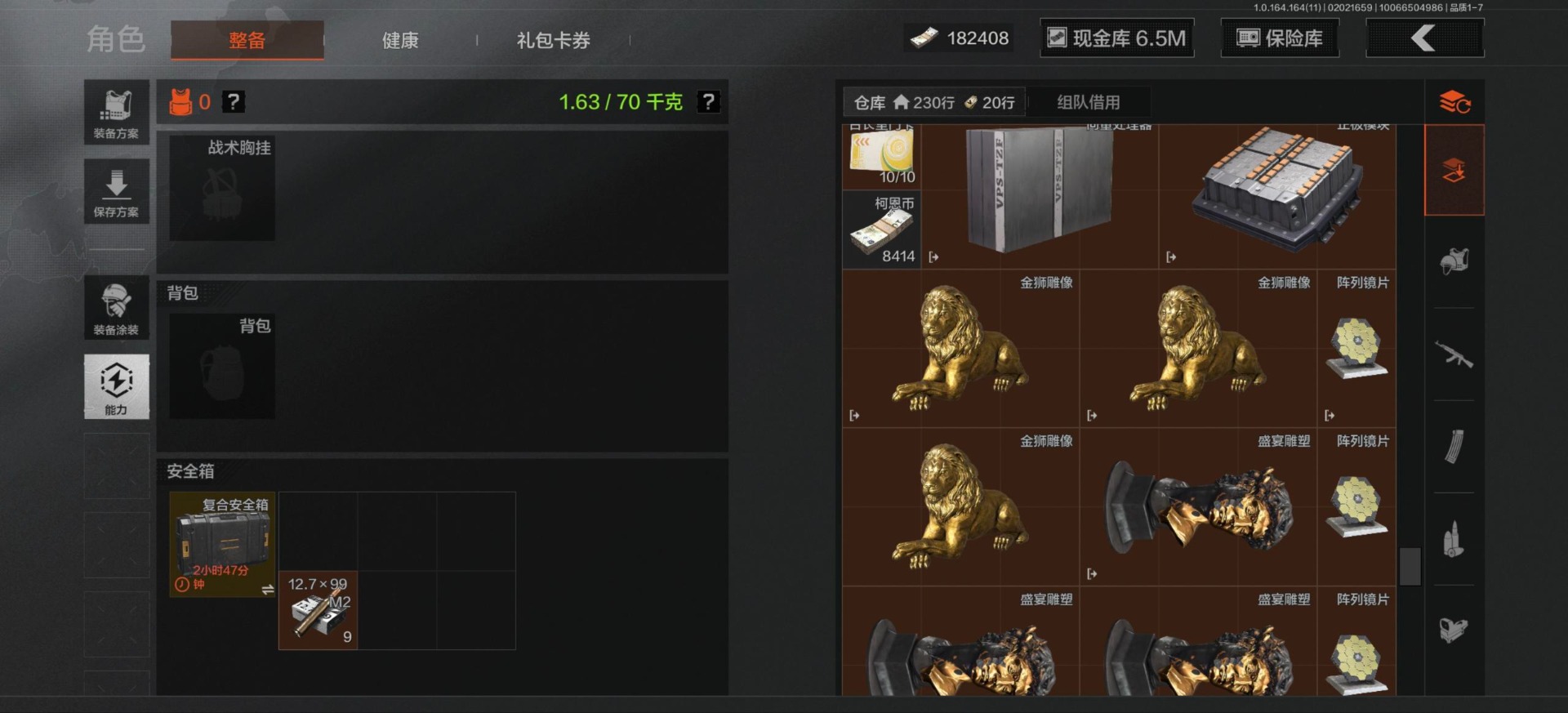 [16462172]库存价值46.6 可修改实名 【柯恩币数量】182408现金库6.5m 【紫色呛皮】棱光裂变·ak102骑士之剑·t03骑士之剑·scar-l动感舞步·ace31格勒涂装·ak12宝石籽料·m旗帜脉冲·m110深蓝·aek 【角色装扮(紫)】高地武士套装和平先锋作战套装财团之手作战套装