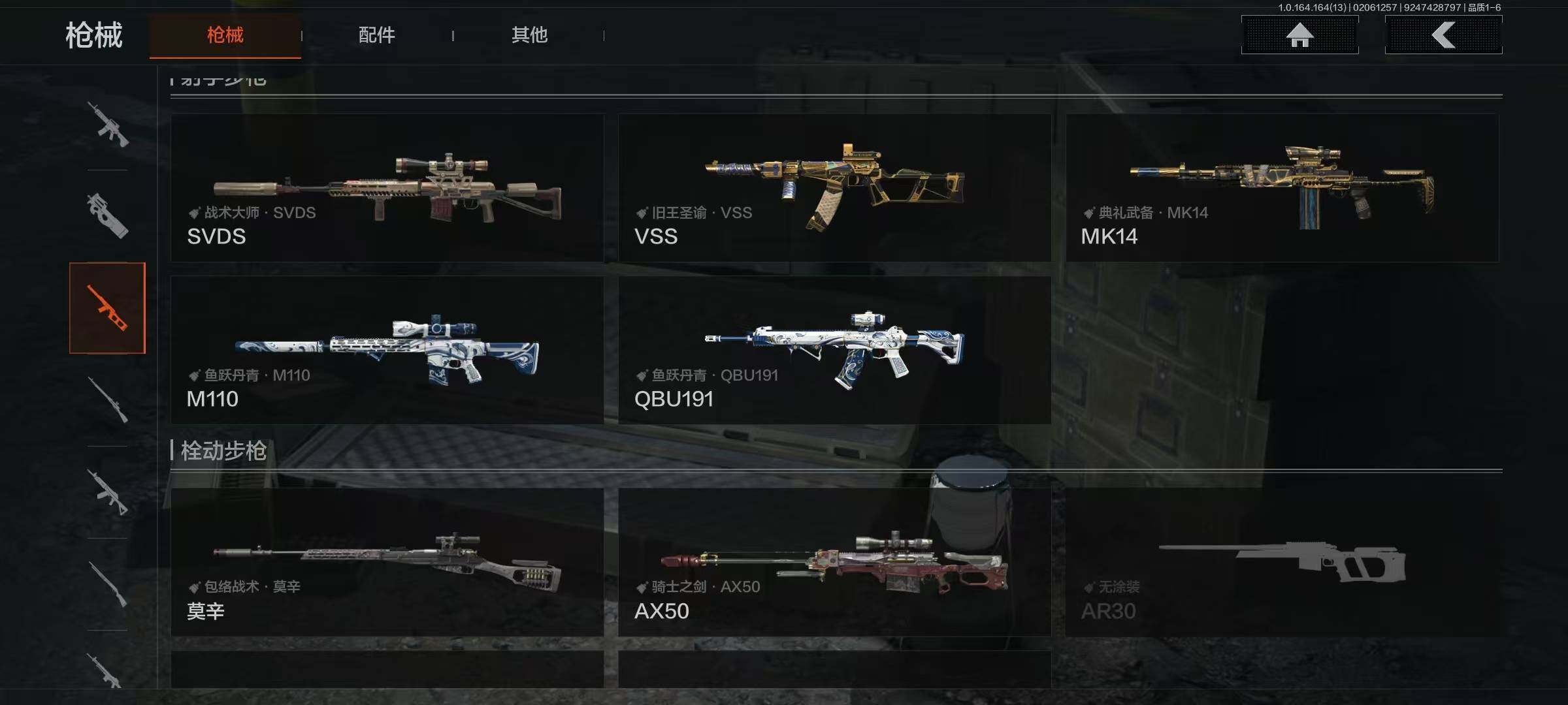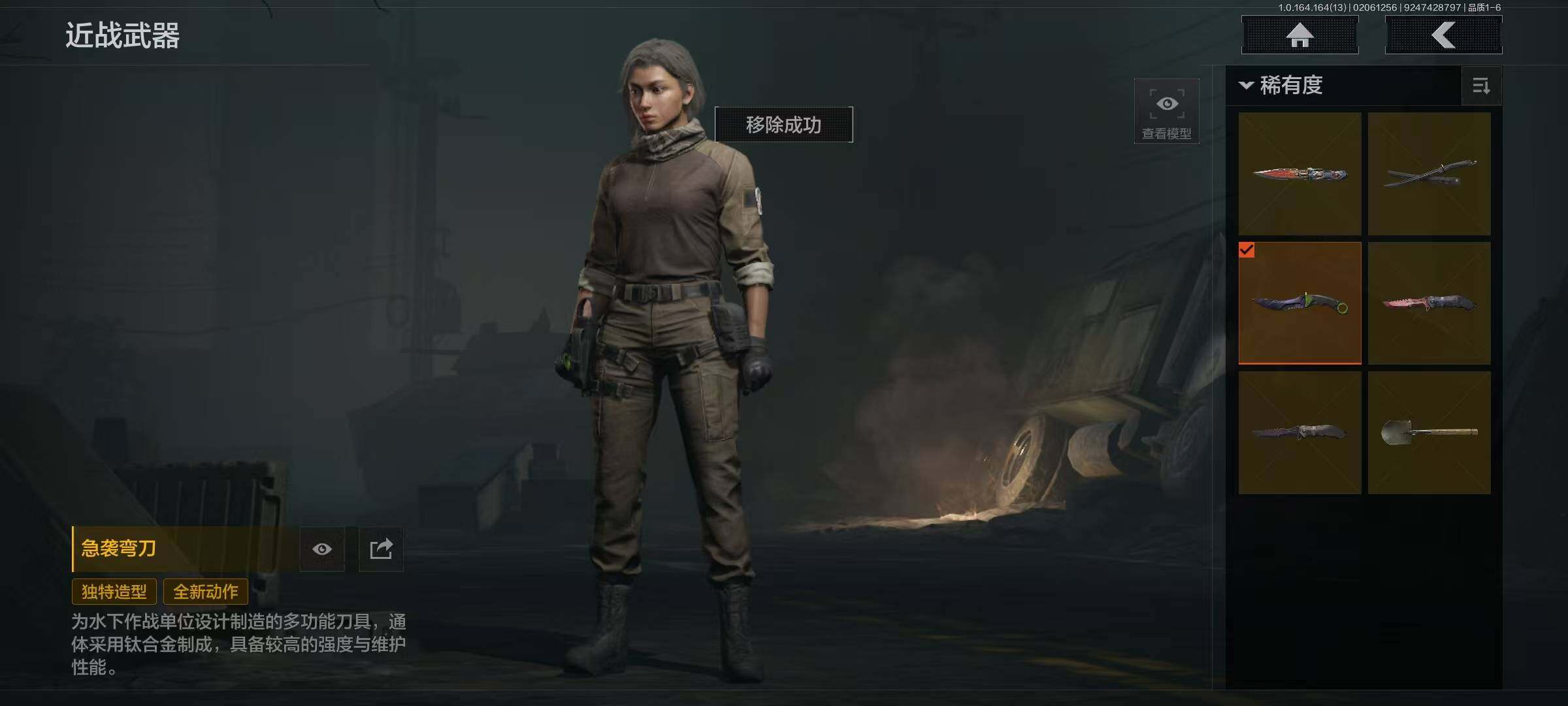 猛攻号,到手即玩,五把不错的刀皮手套 【近战武器】:急袭弯刀,野战折刀,明刀·绣春,明刀绣春,空腔战术,瑞兔折刀 【手套】:急袭手套 【金色套装】:脉冲马克西姆