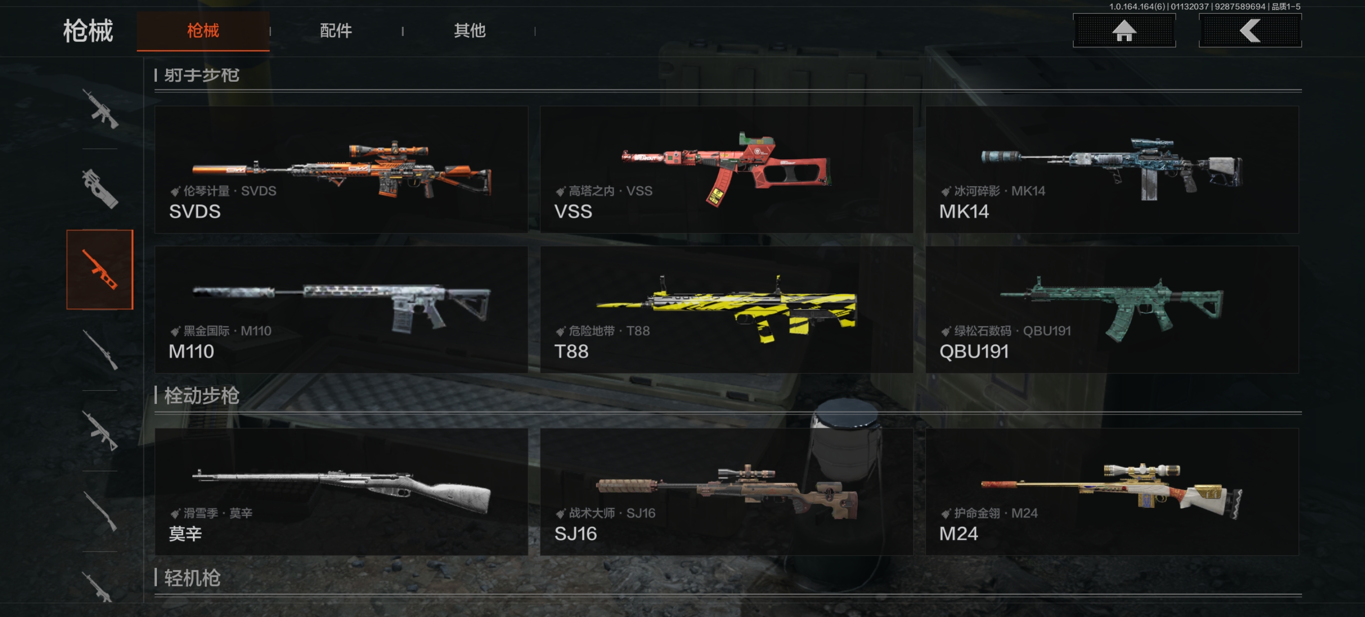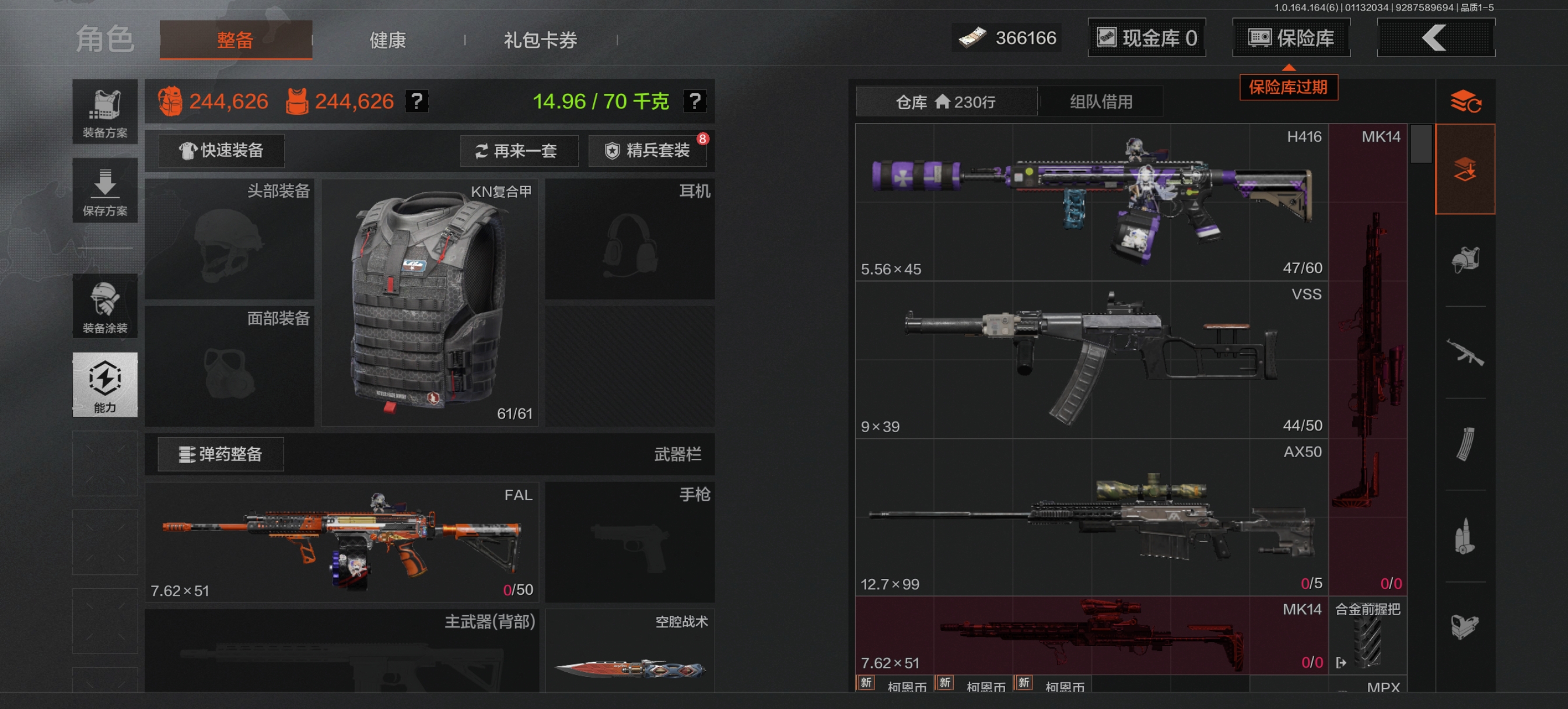 laq5025安卓q可二次-等级30-仓库价值57.4m-科恩币1k-【近战武器】空腔战术,热能补牢,赢家匕首,胜利军刀,工兵铲,来战开山刀,【呛皮】战术大师aek,蓝色咆哮h416,伦琴幻影fal【套装】噤声者吉利服,城市户外运动套装,高地武士套装,王国卫队礼服,鎏金街头套装,都市夜影套装
