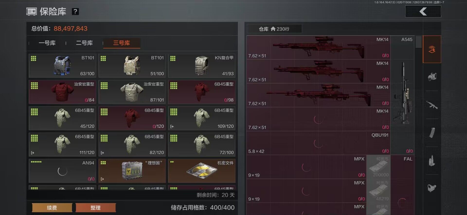【aqqh420】段位:暗区传说/仓库价值百万:256.4/幽燕钛玄/涂鸦利刃/工兵铲/来战开山刀/脉冲马克西姆/白蔷薇斯黛拉/冥河/深潜行者ii/清影