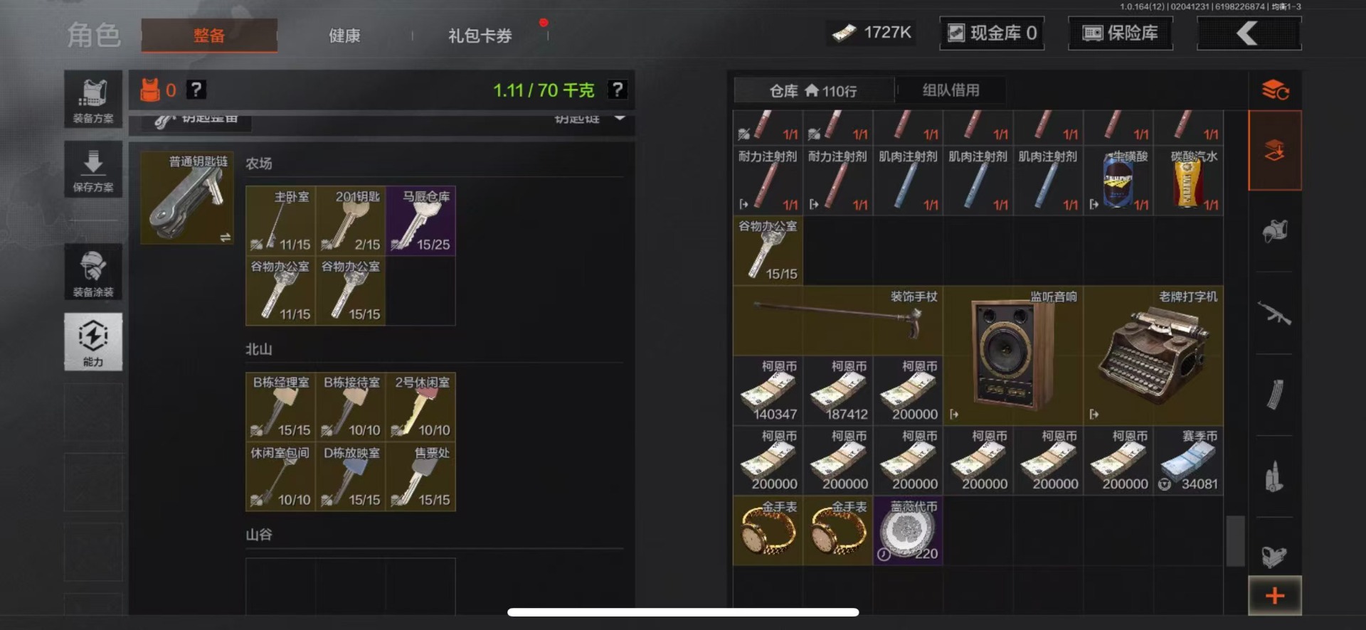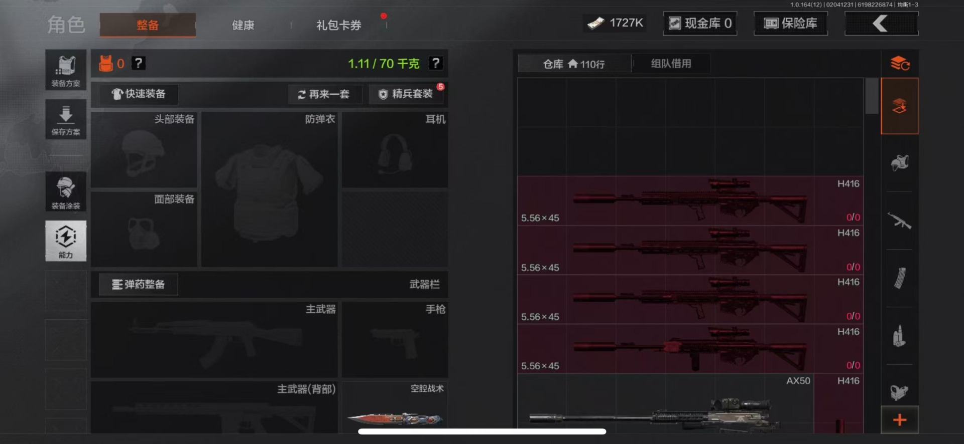 库存价值8.2 2近战武器 2金呛皮 可修改实名 【柯恩币数量】1727k 【近战武器】工兵铲空腔战术 【金色呛皮】战术大师·aek利齿风暴·m 【紫色呛皮】利齿风暴·t79利齿风暴·t03鱼跃丹青·qbu191动感舞步·ace31格勒涂装·ak12典礼武备·14粉绒臻选