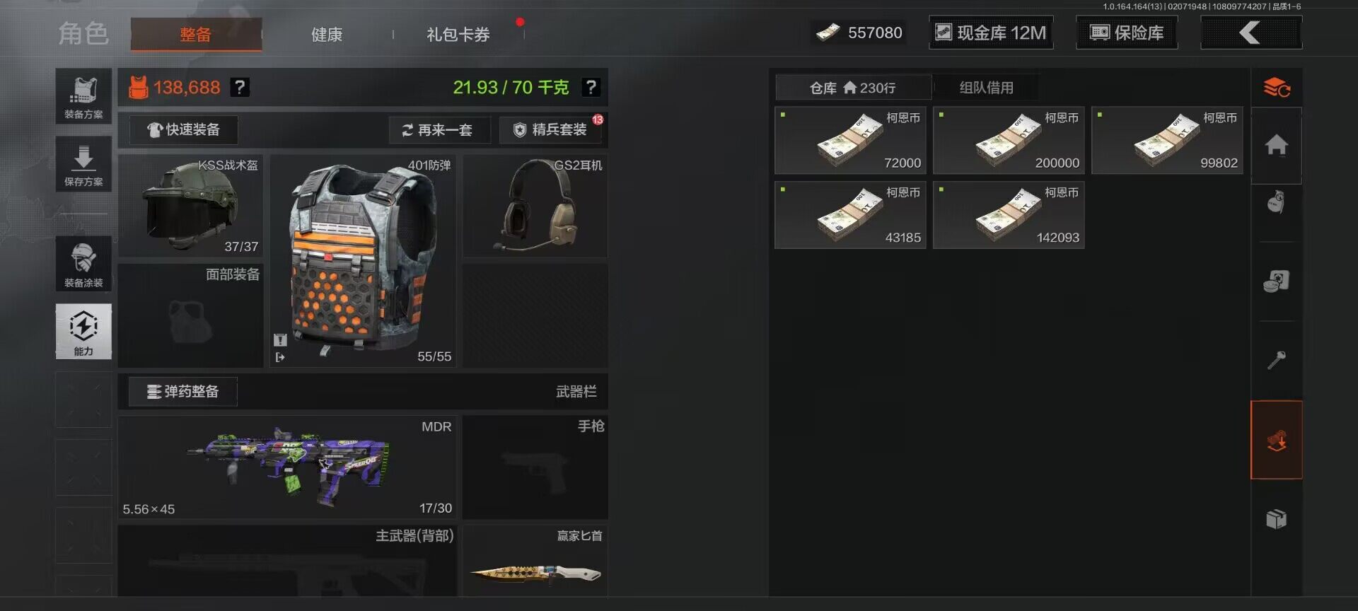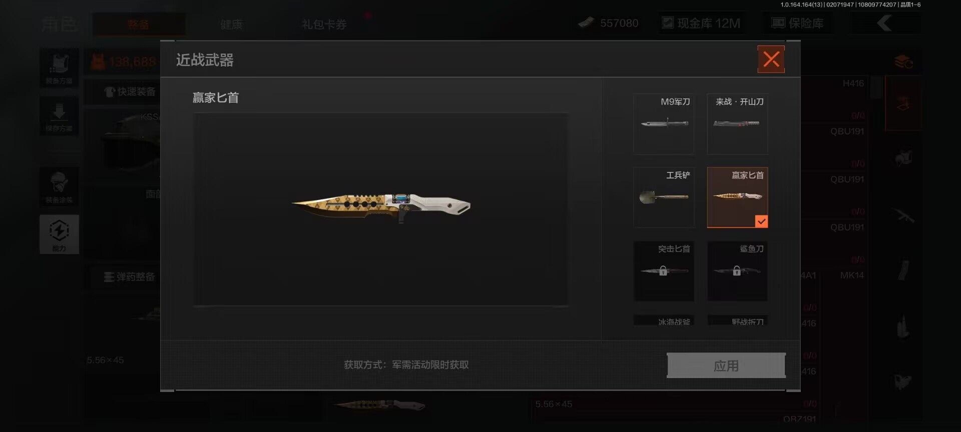 【aqzg1227】等级:30/段位:新锐/仓库价值百万:99.5/柯恩币:12662086/赢家匕首