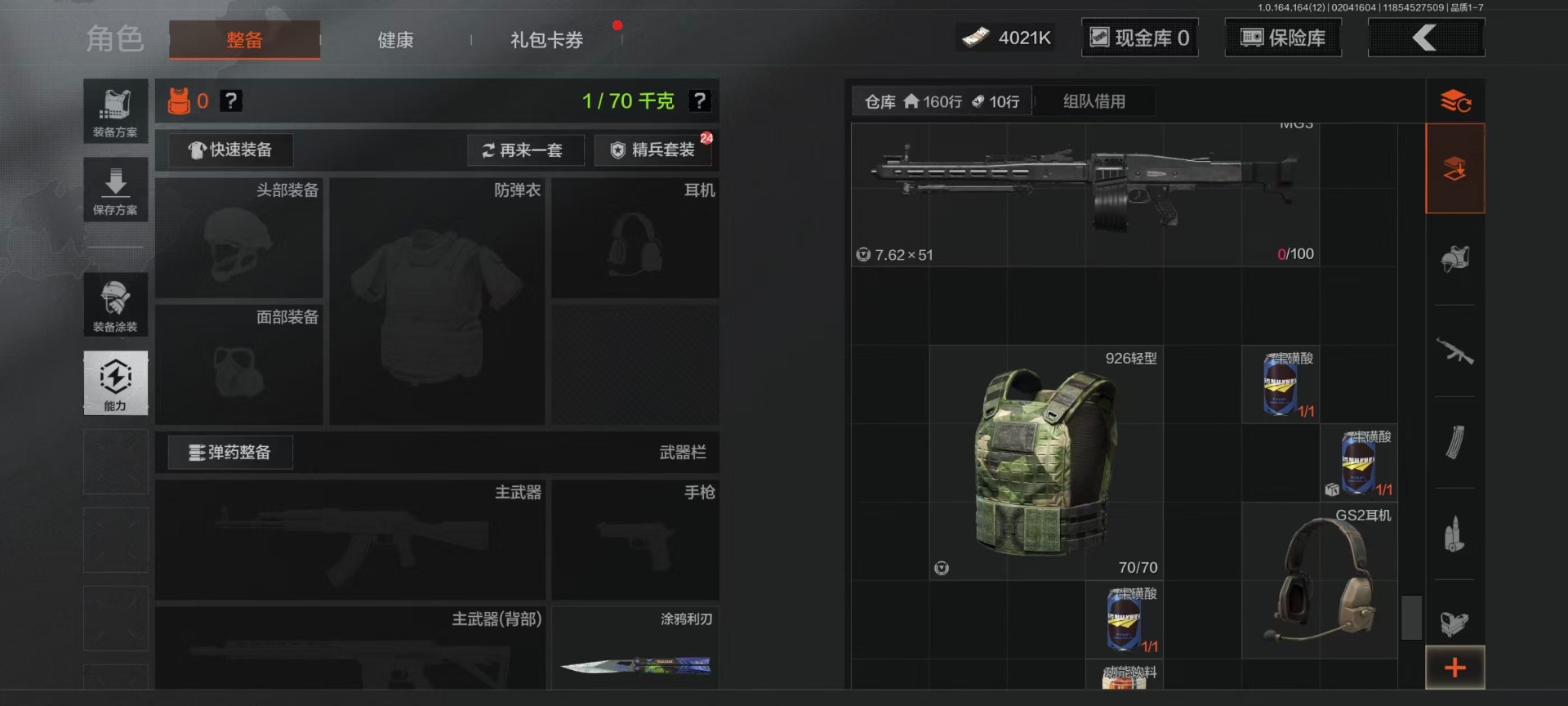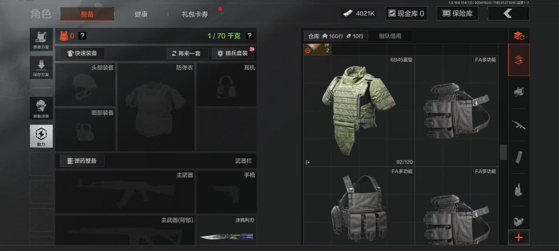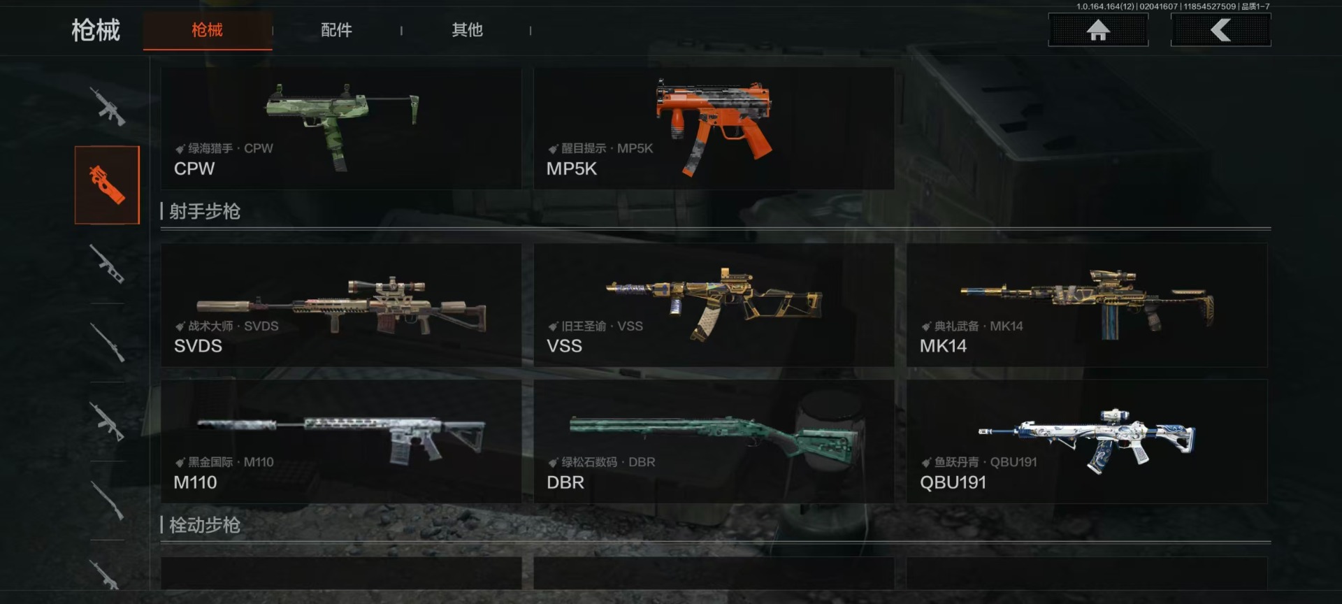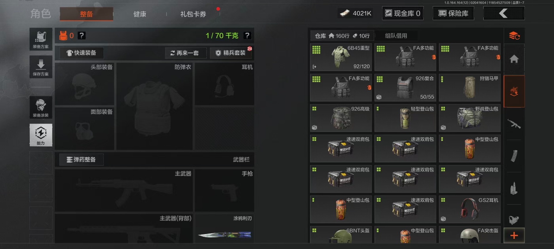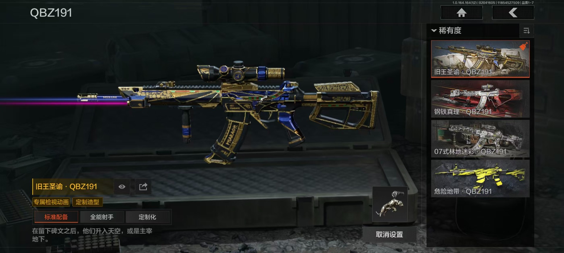 库存价值22.9 4近战武器 7金呛皮 可修改实名 【柯恩币数量】4021k 【近战武器】工兵铲空腔战术来战·开山刀涂鸦利刃 【金色呛皮】旧王圣谕·vss旧王圣谕·q191骑士之剑·ax50利齿风暴·m旗帜·aek钢铁真理·q191蓝色咆哮·h416 【紫色呛皮】利