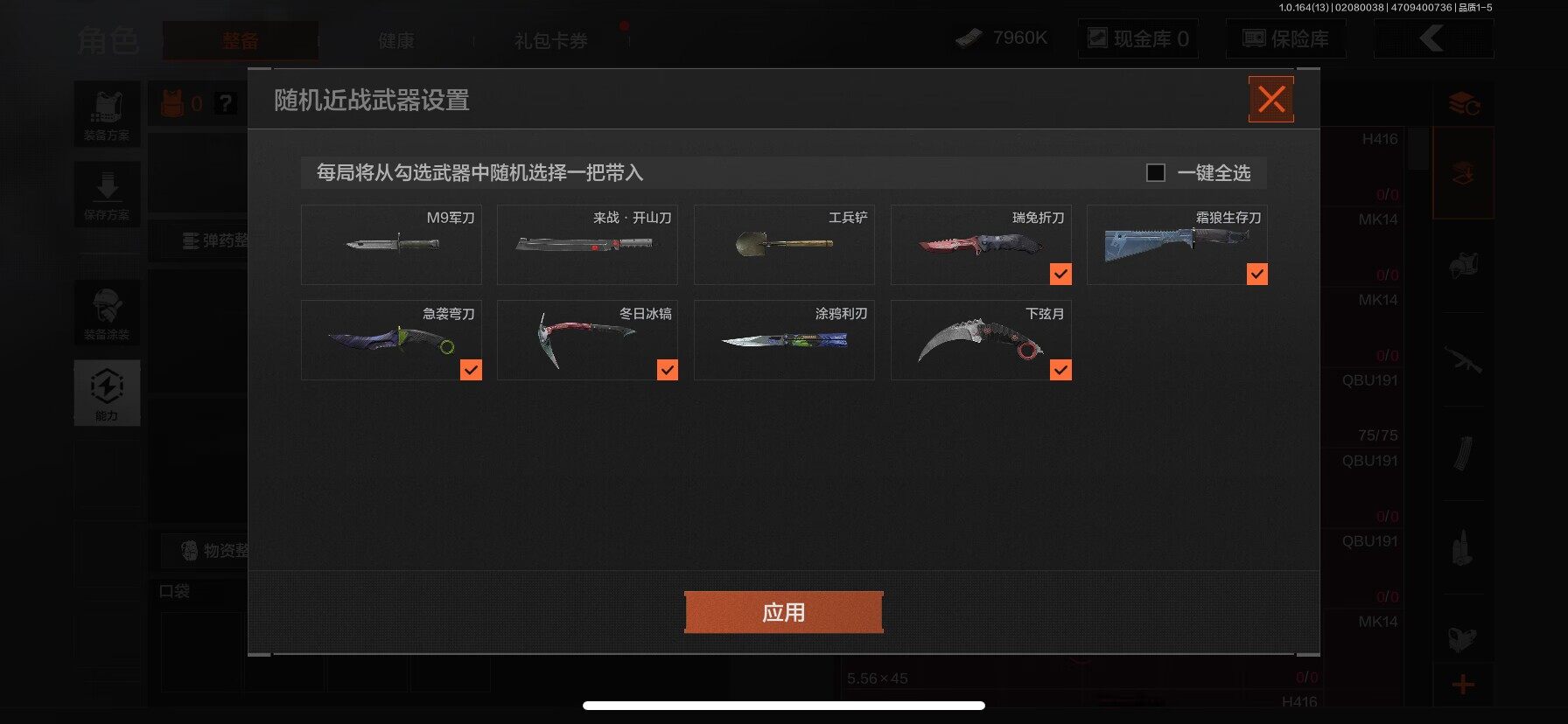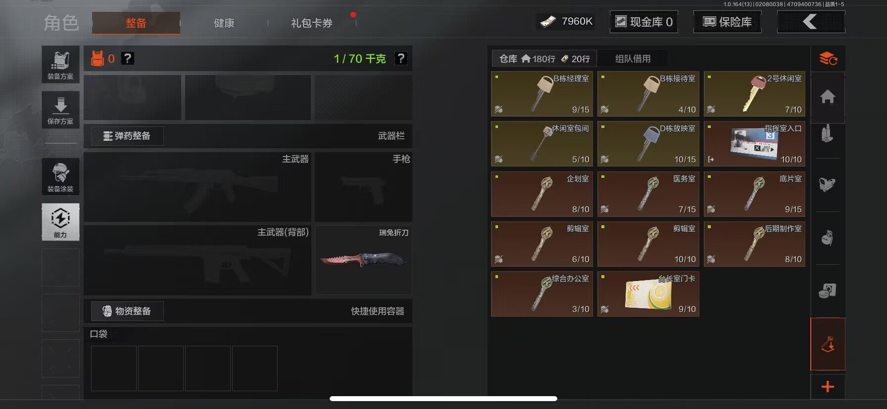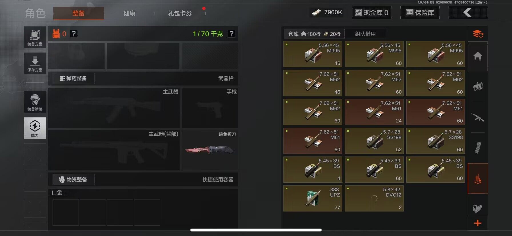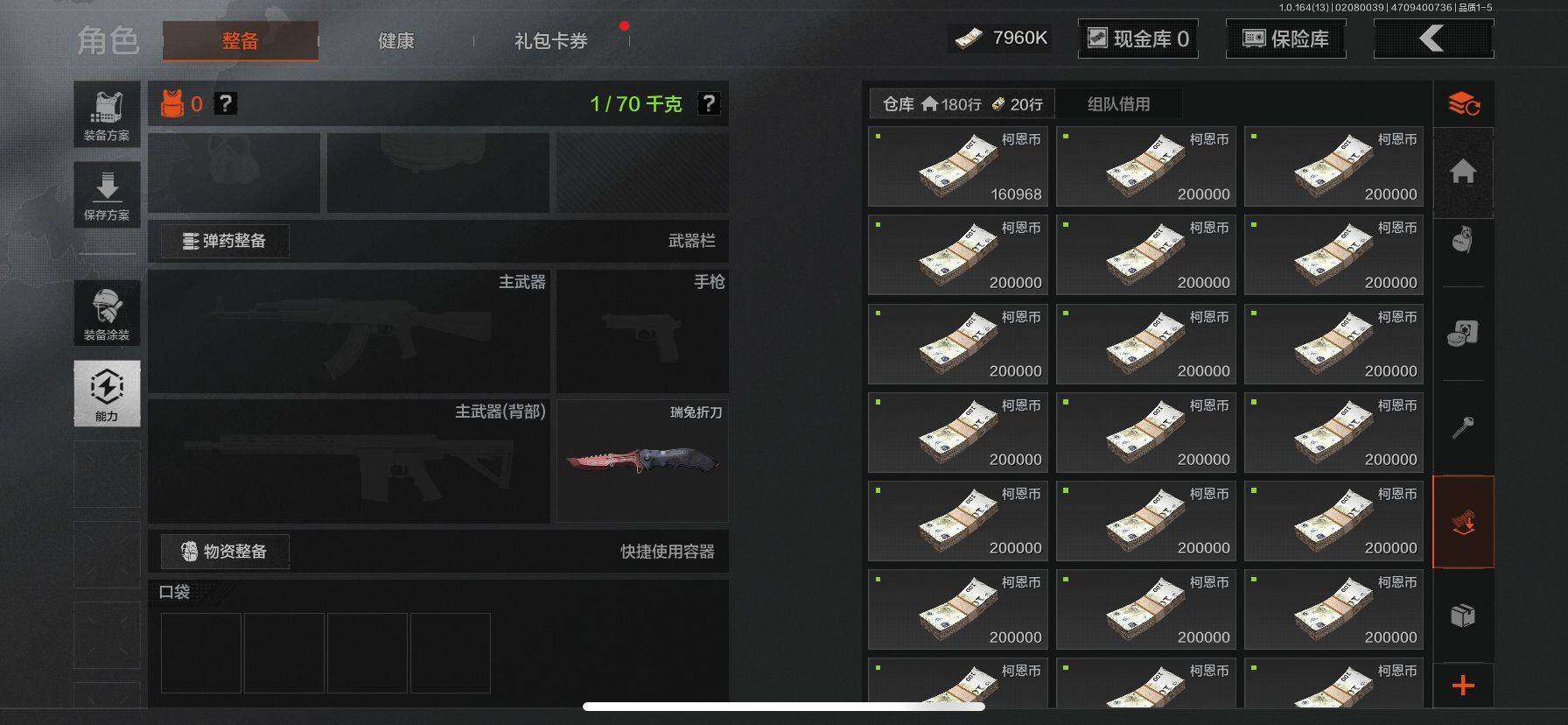 【aqzg1236】等级:30/段位:大师/仓库价值百万:31.2/柯恩币:7960000/急袭手套/瑞兔折刀/涂鸦利刃/冬日冰镐/霜狼生存刀/急袭弯刀/下弦月/冥河/深潜行者ii/噤声者吉利服/机车朋克战衣/冰河碎影mk14/冰河碎影aug/伦琴幻影ax50/蓝色咆哮h416/诸星之子fal